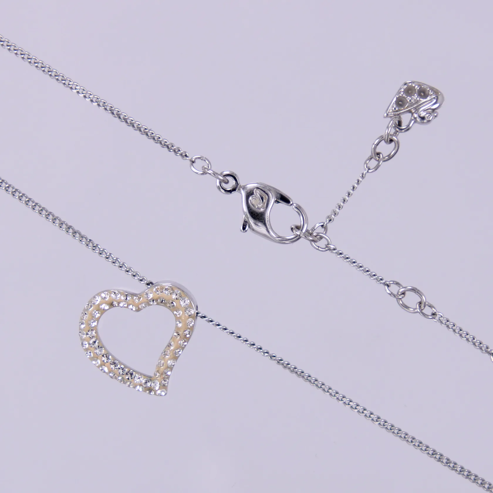 Collier hjärta med vita stenar, Swarovski, längd: ca 44cm, 1-15mm, metall
