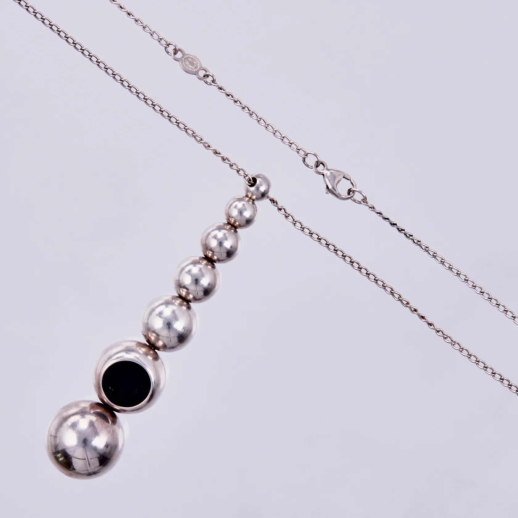 Collier, George Jensen, "Cave pendant" design Jaqueline Raburn, # 441, längd: ca 50cm, justerbart, bredd: ca 1mm, längd hänge ca: 6cm, 925/1000, silver Vikt: 17,7 g.