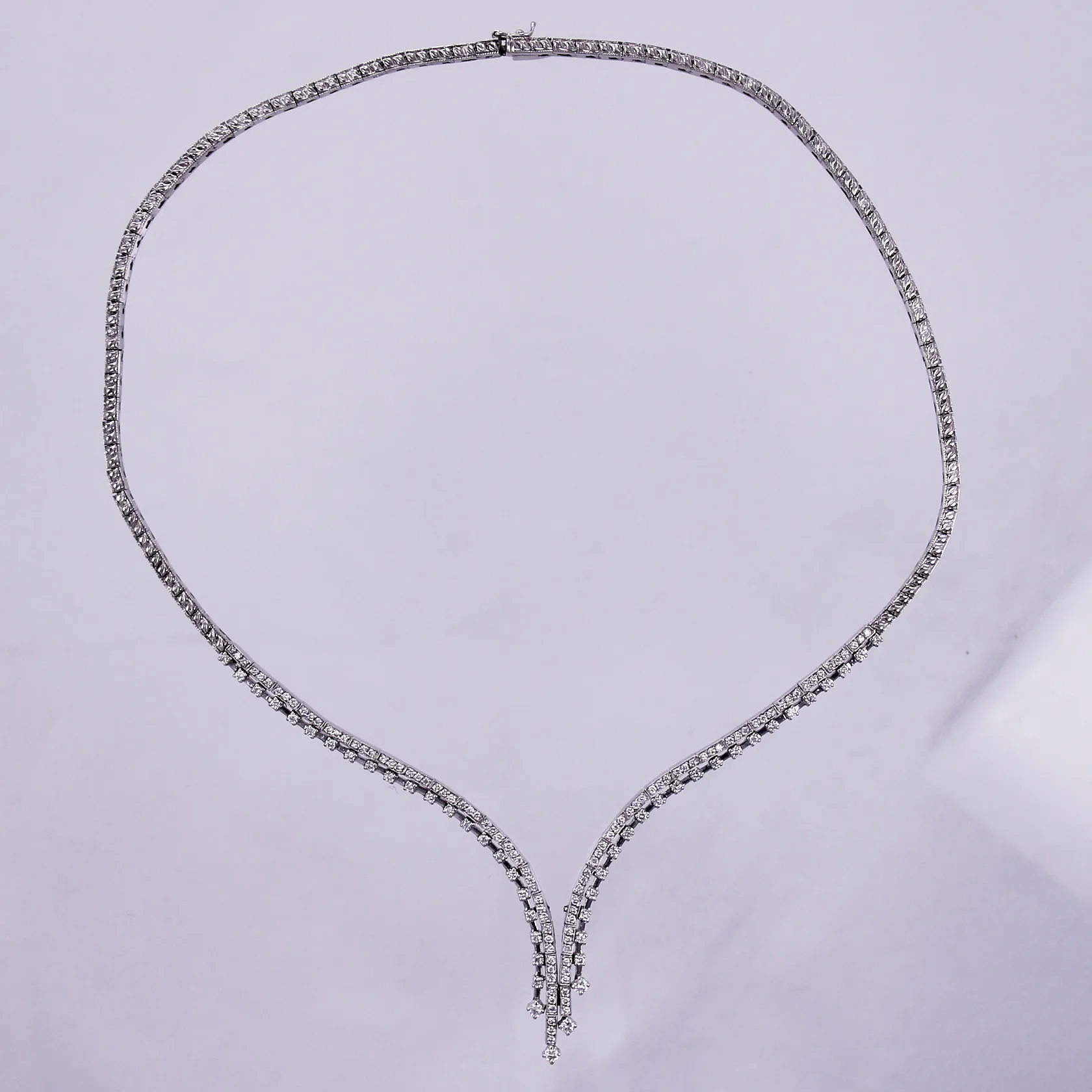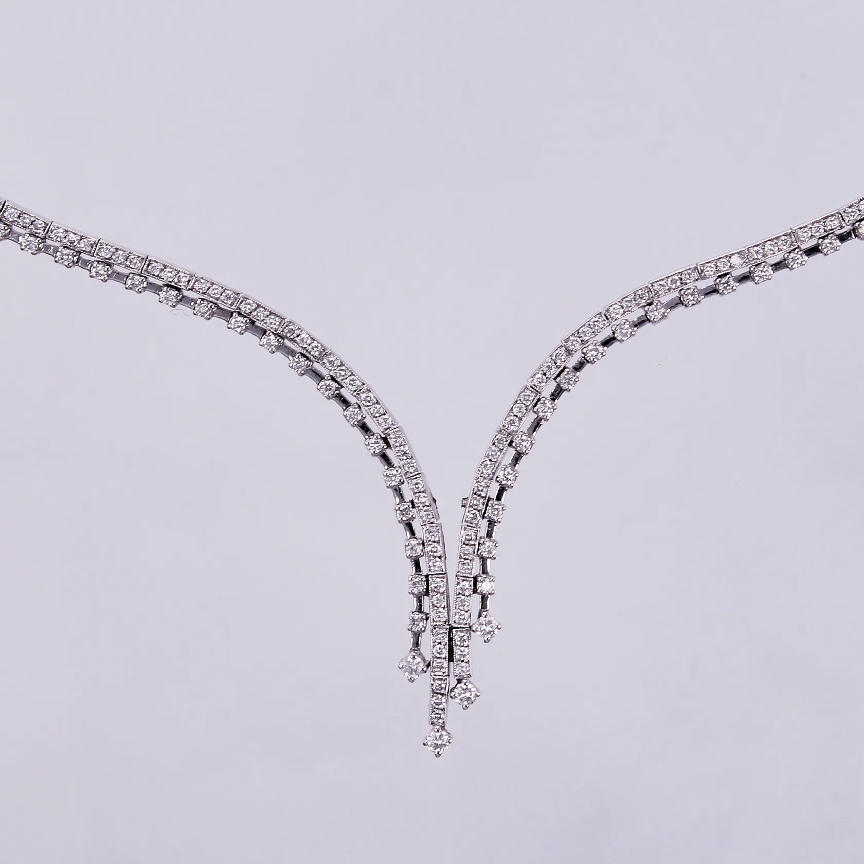 Collier med diamanter ca 148x0,01ct samt 4x0,04ct, längd ca 42cm, bredd ca 3-10mm, defekt lödning vid främre delen på hänget, 18K Vikt: 35,2 g.