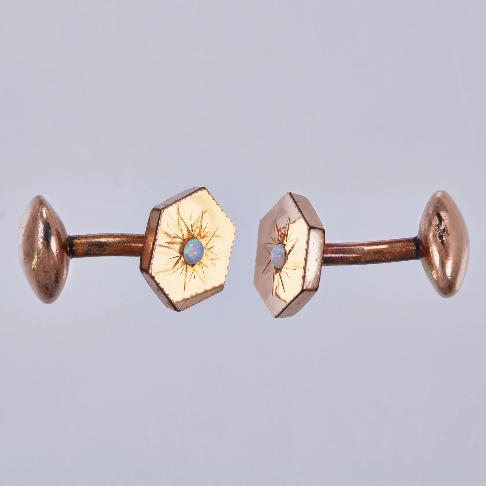 Ett par manschettknappar med två opaler, Ø ca 10-12mm, förgylld metall