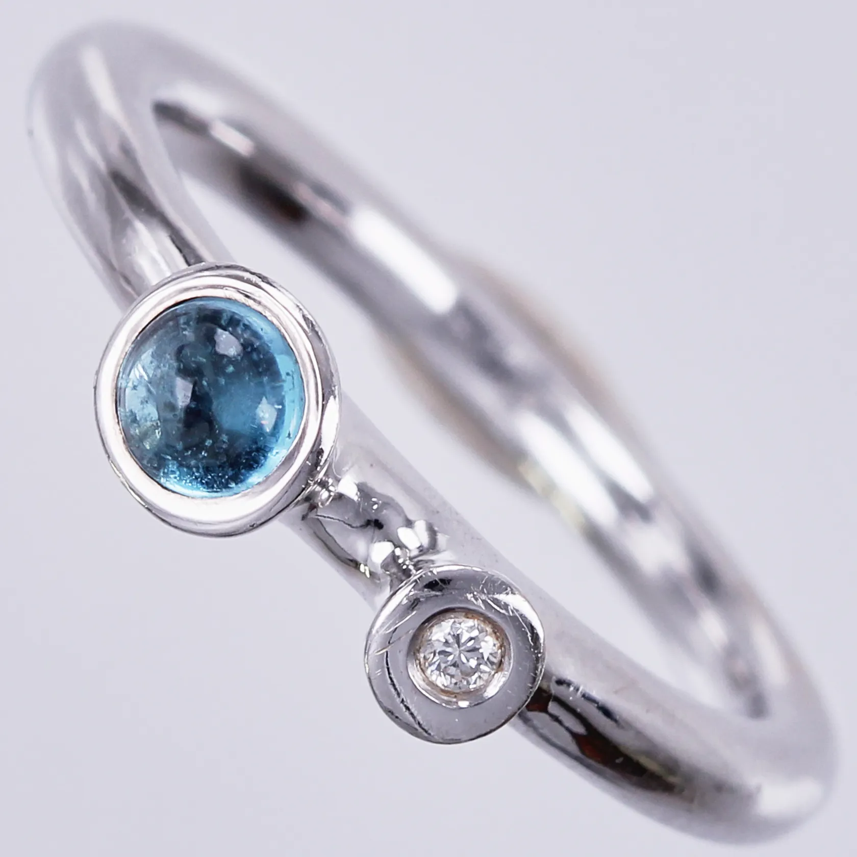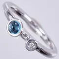 Ring med diamanter ca 1x0,02ct samt blå sten, stl: 17 ½, bredd ca 2-4mm, 14K Vikt: 4,5 g.