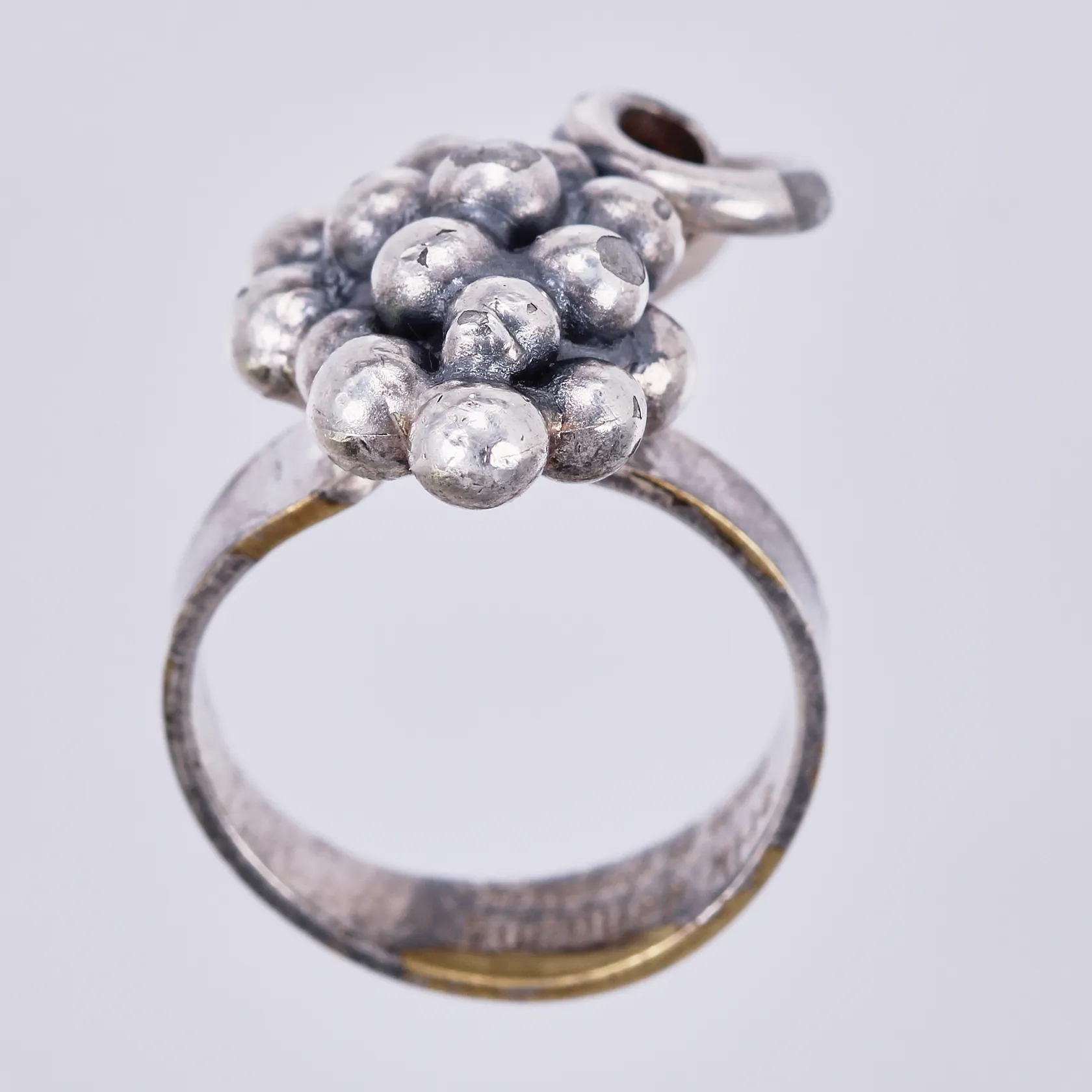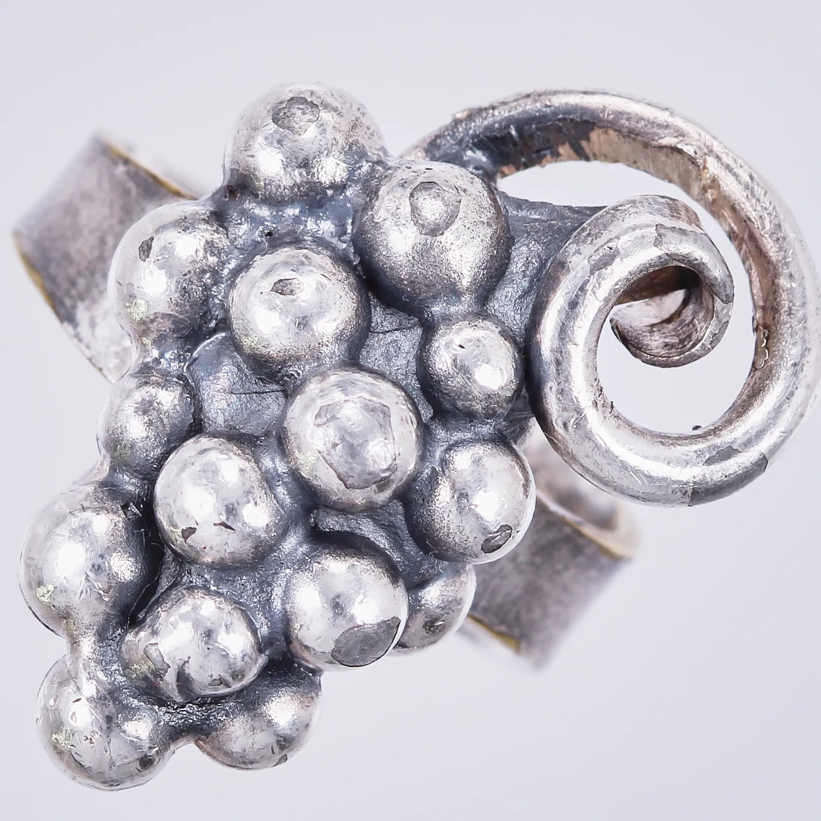 Ring druvor, Erik Dennung, stl: 16½, bredd: ca 4-6mm, Ø25mm, Danmark, försilvrad metall Vikt: 10,5 g.