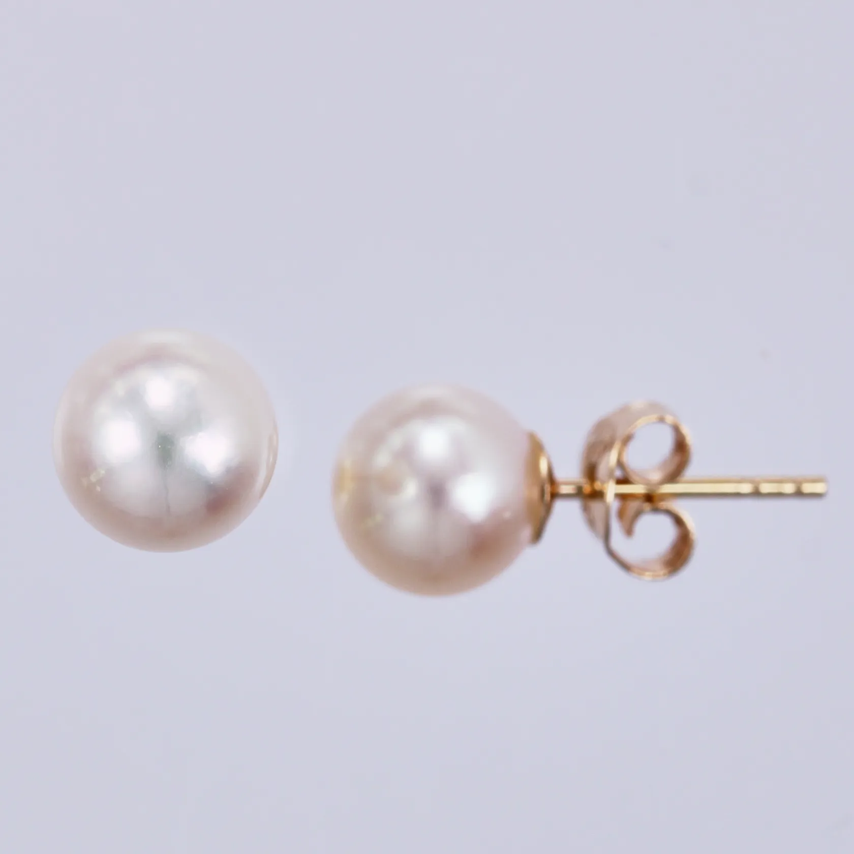 Ett par örhängen med odlade sötvattenpärlor, längd: ca 1,5cm, Ø6mm, 18K Vikt: 1,9 g.