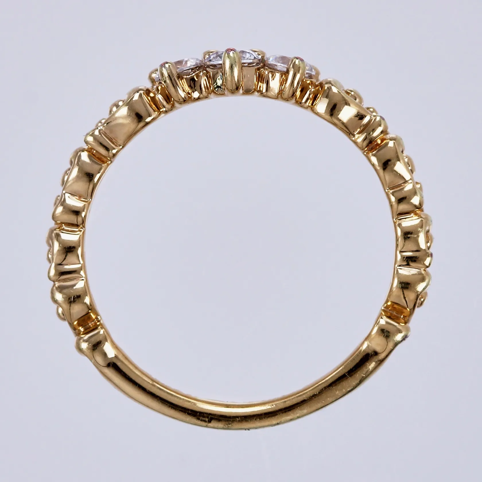 Ring med vita stenar Pandora, stl 15¾, bredd ca 1-4mm, förgylld metall