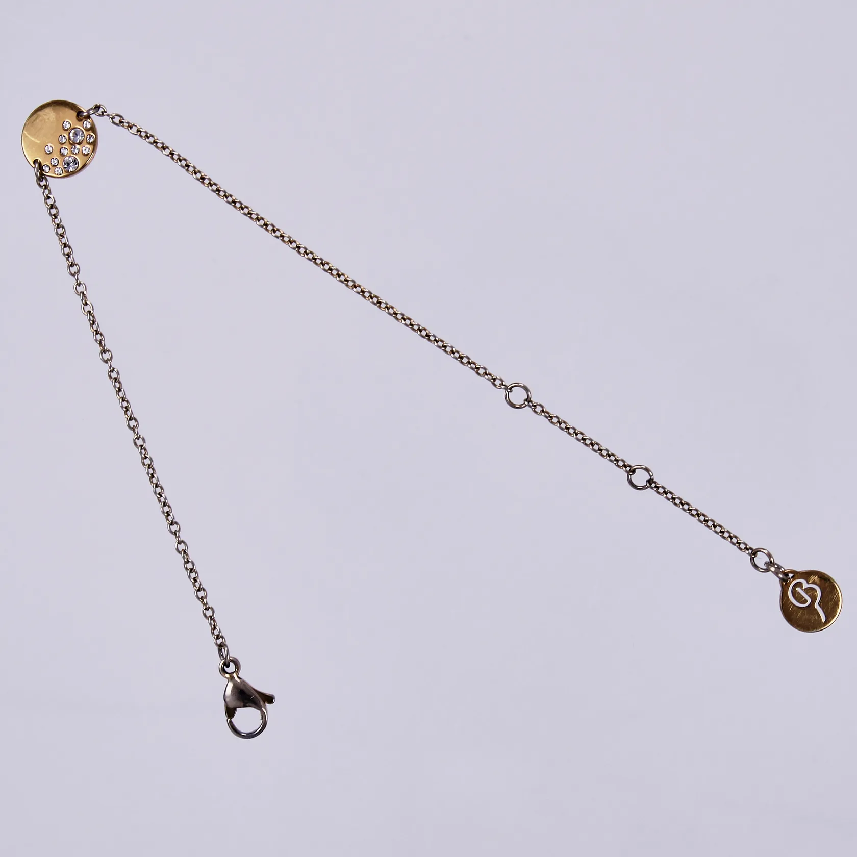 Armband Edblad med vita stenar, längd ca 15-18cm, bredd ca 1-9mm, gulmetall