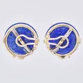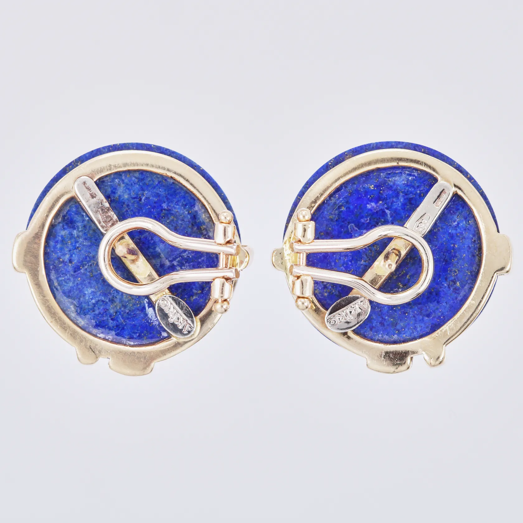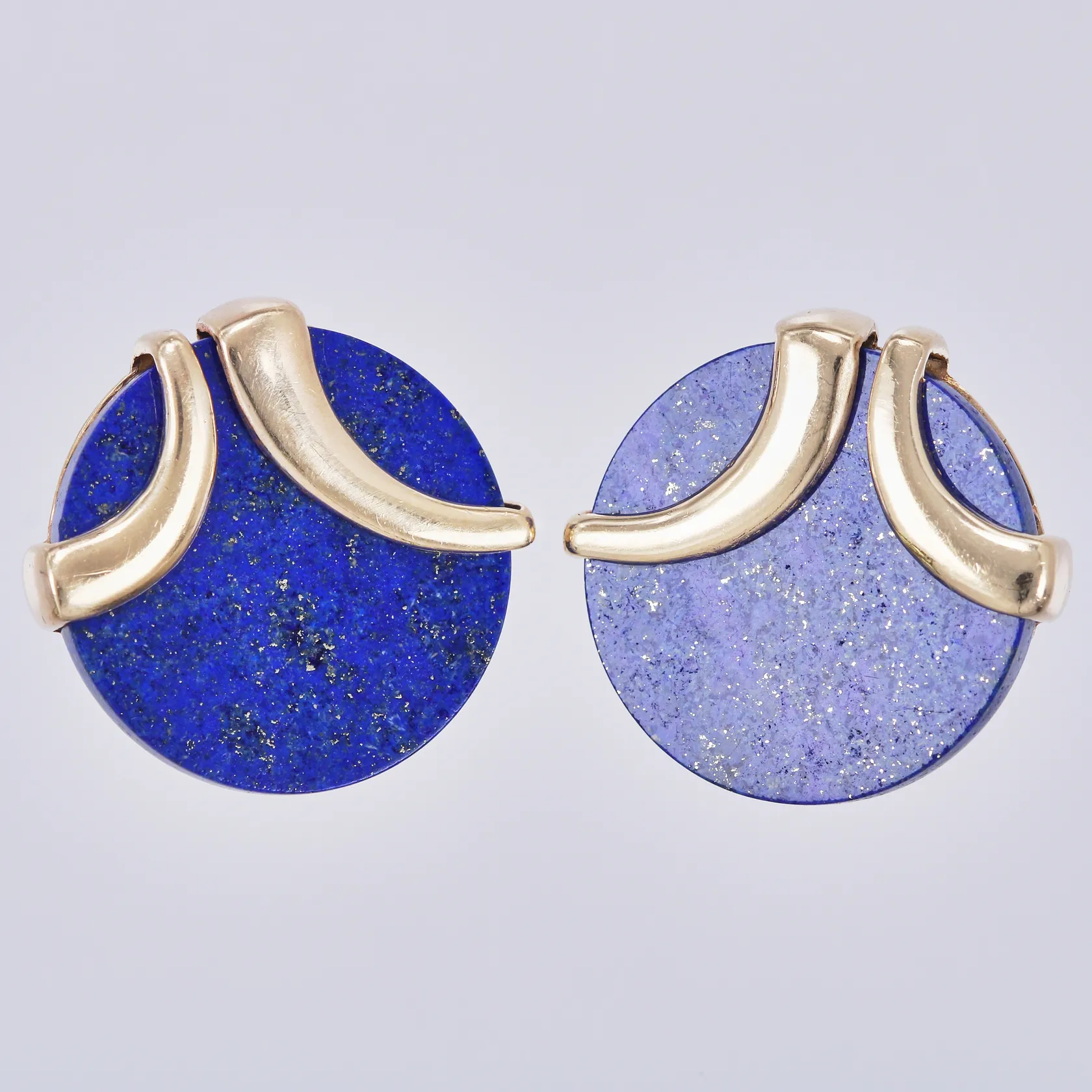 Ett par örhängen med lapis lauzuli, Ø ca 22mm, stift samt clips, Akiko, 14K, bruttovikt: 10,2g Vikt: 10,2 g.