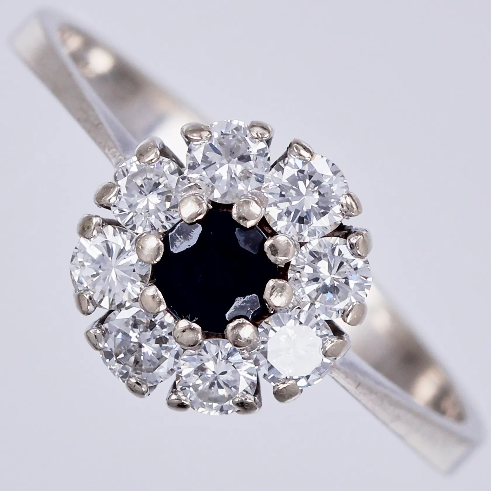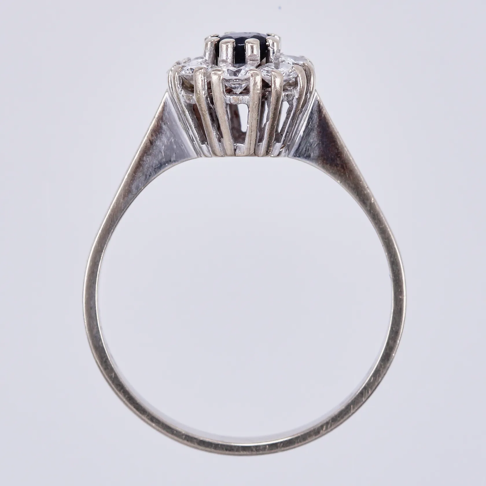 carmoséring med safir och diamanter, totalt ca 0,48ct, stl: 17¾, bredd: ca 1-9mm, vitguld, 18K Vikt: 2,7 g.