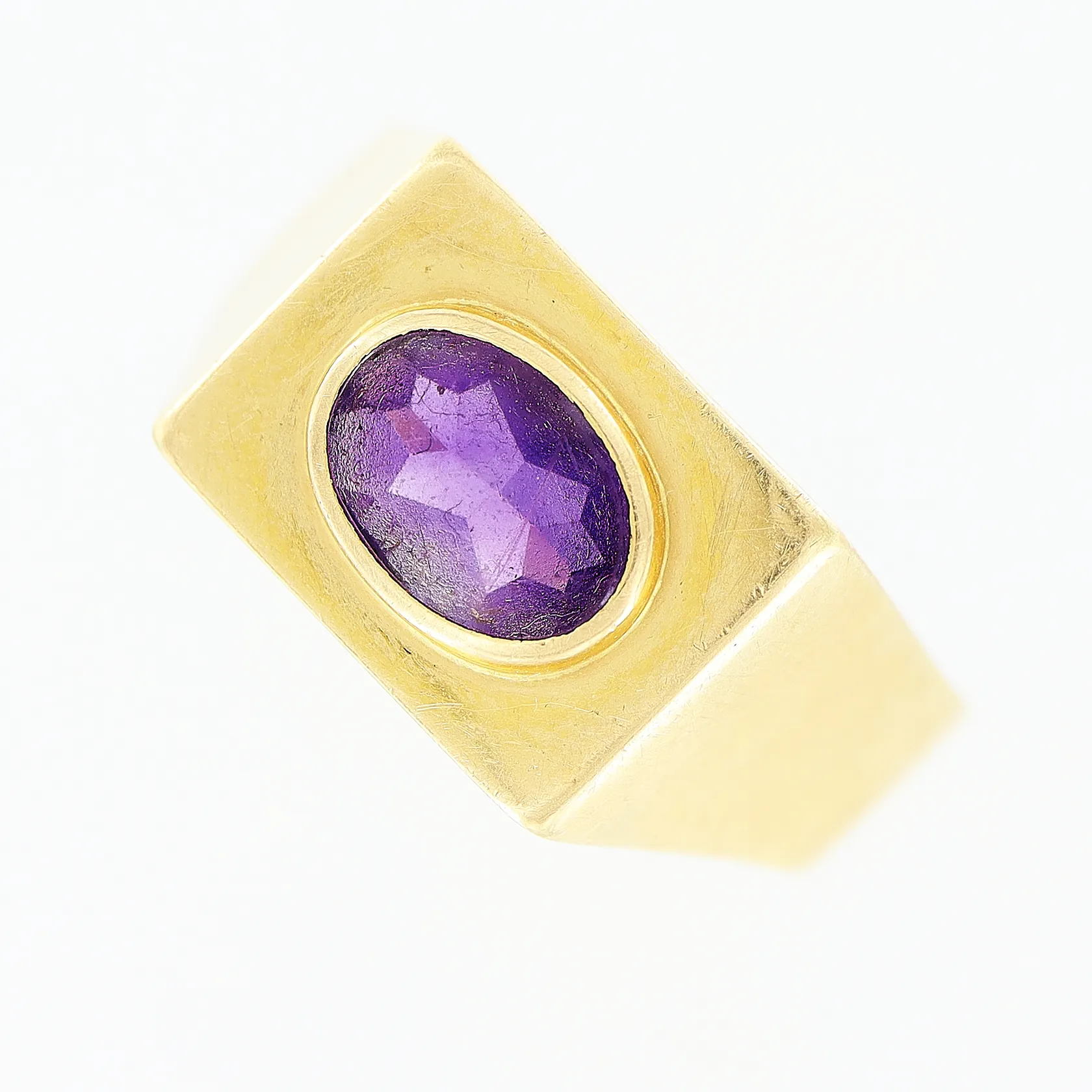 Klackring, lila sten, stl 18½, bredd 4-9,5mm, 18K Vikt: 4,4 g.