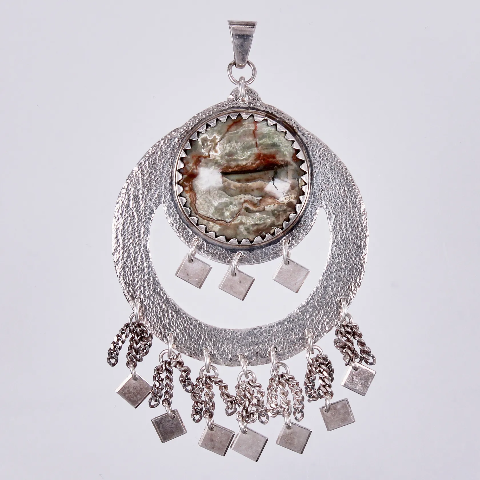 Hänge med färgad sten, längd: ca 8cm, bredd: ca 45mm, Lars Johansson, 925/1000, silver Vikt: 22,2 g.
