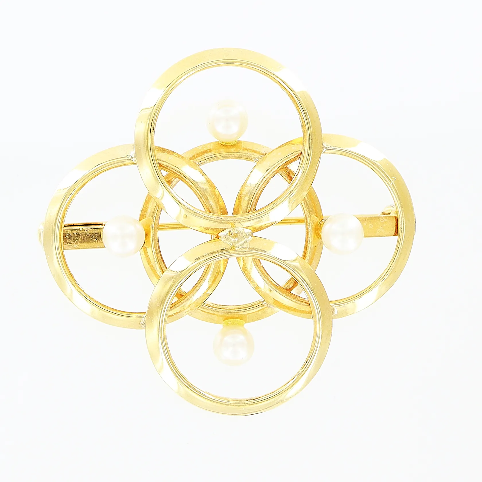 Brosch, odlade pärlor Ø3,5mm, 36x36mm, 18K. Vikt: 3,6 g.