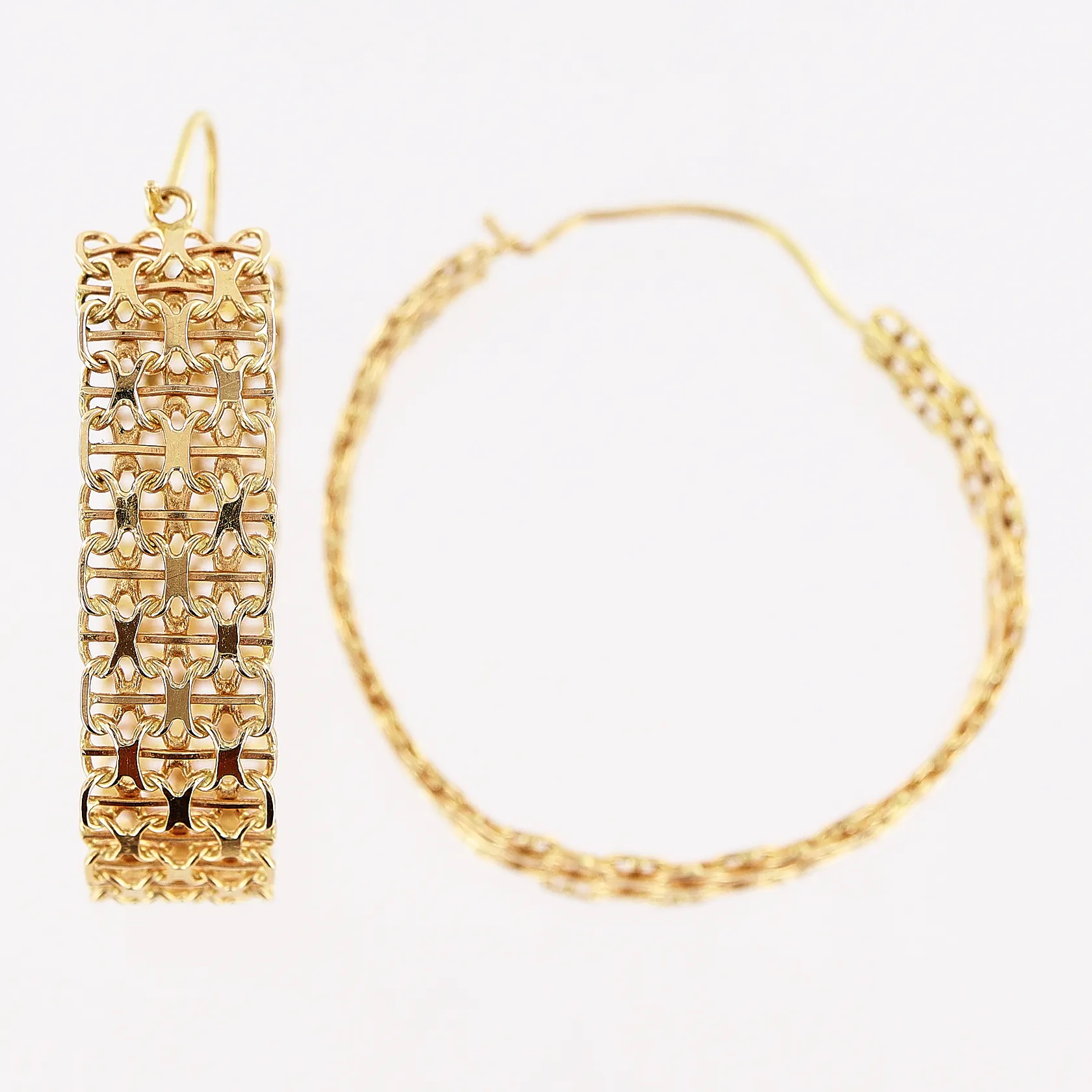 Ett par örhängen, creoler Ø41-43mm, bredd 11mm, skeva, 18K. Vikt: 14,7 g.