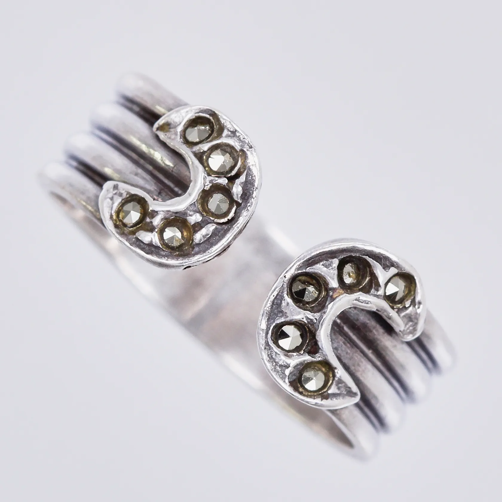 Ring med markasiter, stl: 17, bredd ca 5-7mm, 925/1000 silver Vikt: 3,1 g.