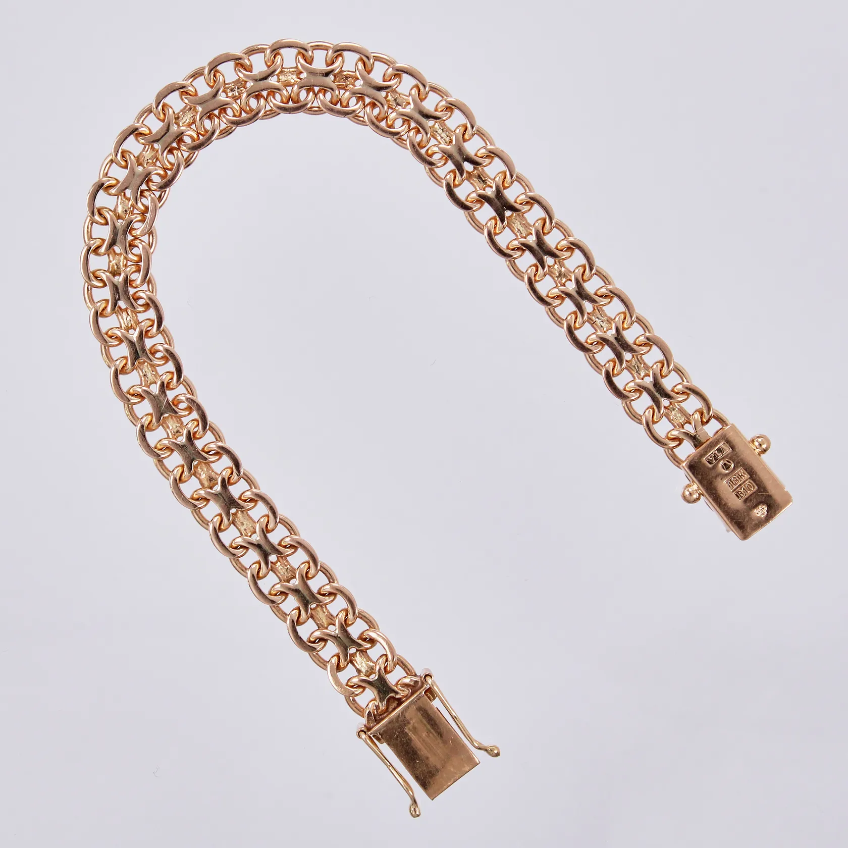 Armband X-länk, längd: ca 19cm, bredd: ca 10mm, VLA, Västerguld Ahlstrand, Stockholm, år 1976, 18K Vikt: 26,1 g.