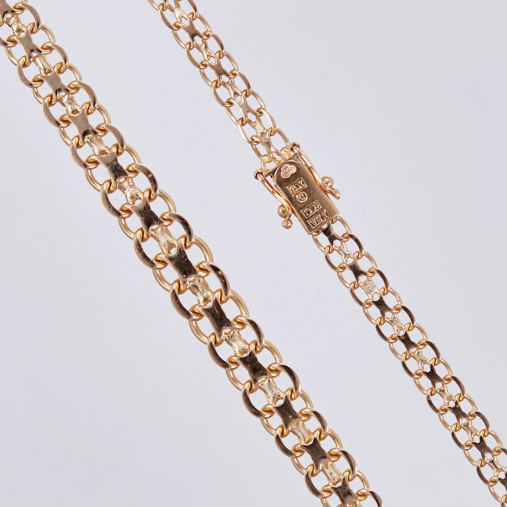 Collier doserad X-länk, längd: ca 44cm, bredd: ca 5-8mm, ÄSA, Ädelsmycken Aktiebolag, Stockholm, år 1972, 18K Vikt: 18,1 g.