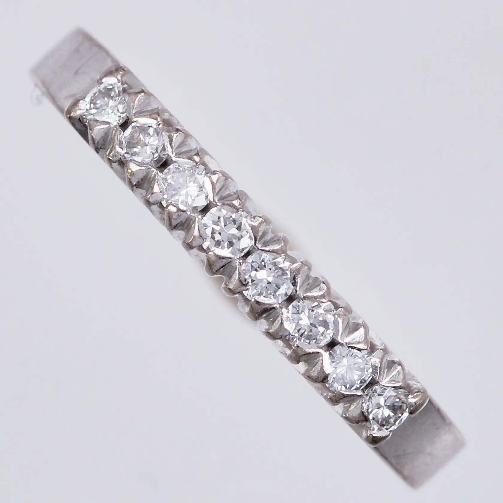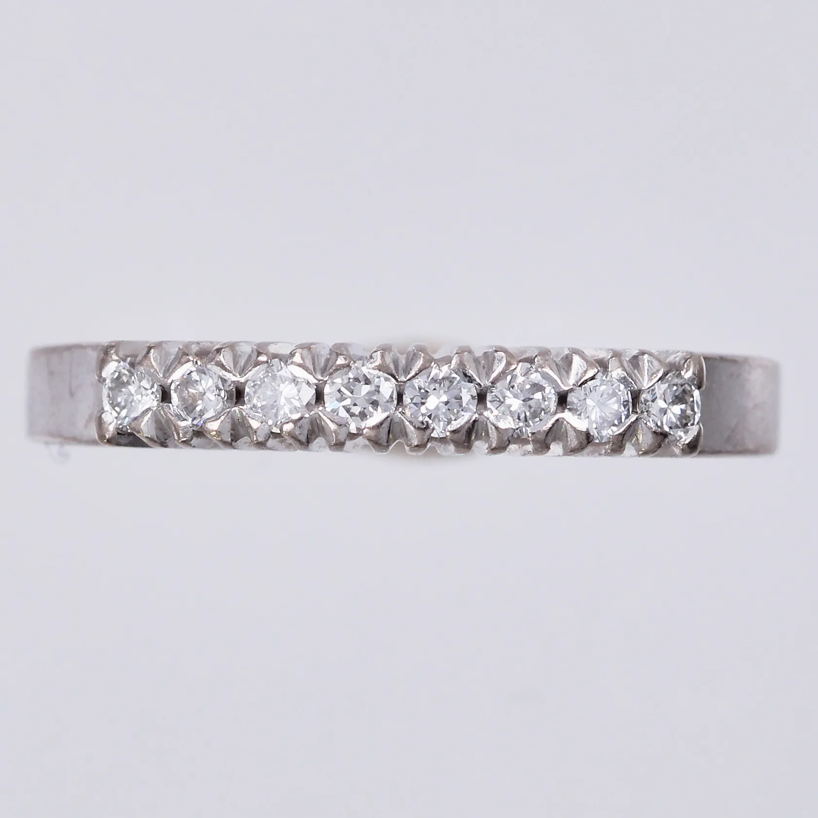 Ring med 8 diamanter ca 0,03ct, stl: ca 17¼, bredd: 2-3mm, vitguld, 18K Vikt: 3,5 g.