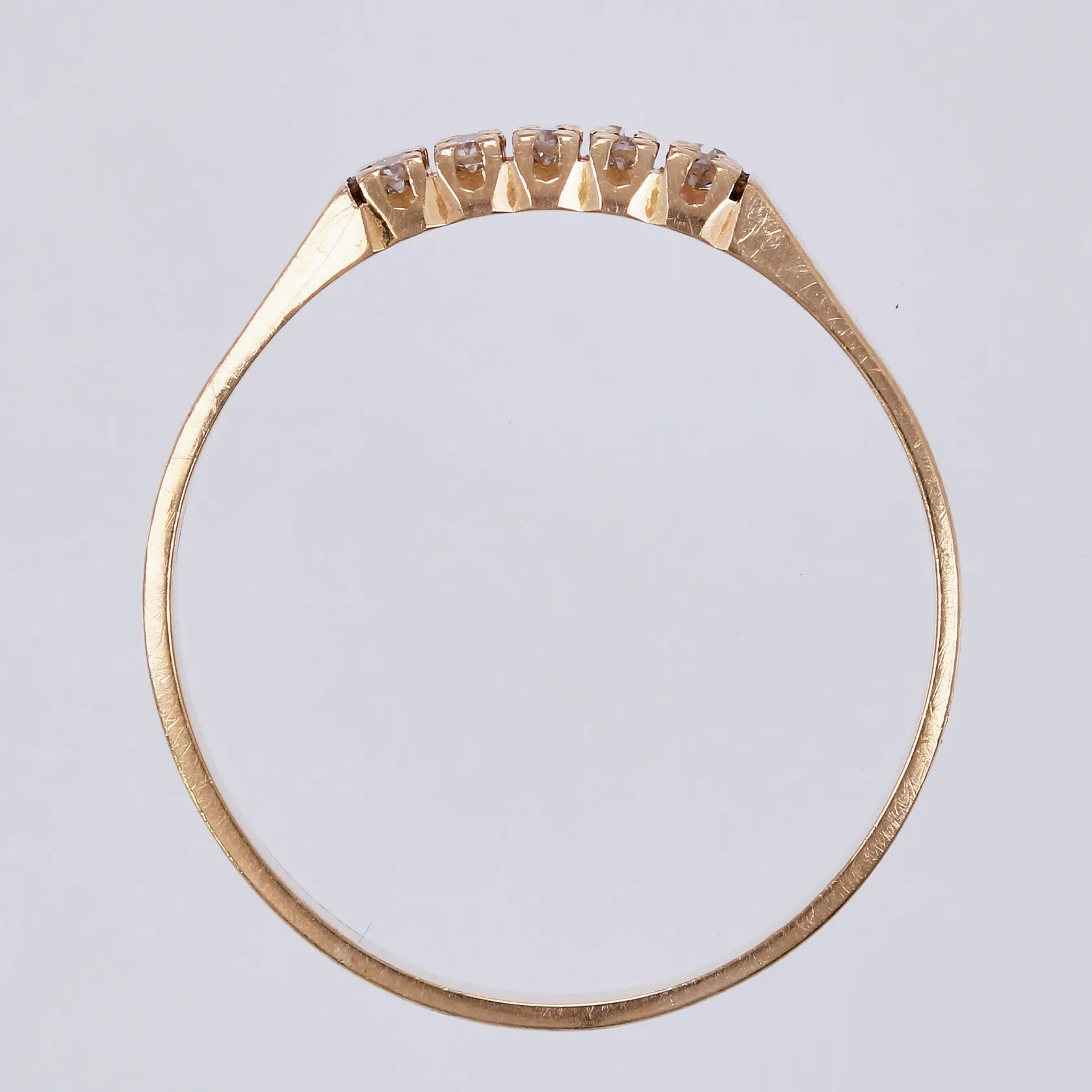 Ring med 10 diamanter ca totalt 0,15ct enligt gravyr, (8/8-slipning), stl: 19¾, bredd ca 3-4mm, 18K Vikt: 3,1 g.