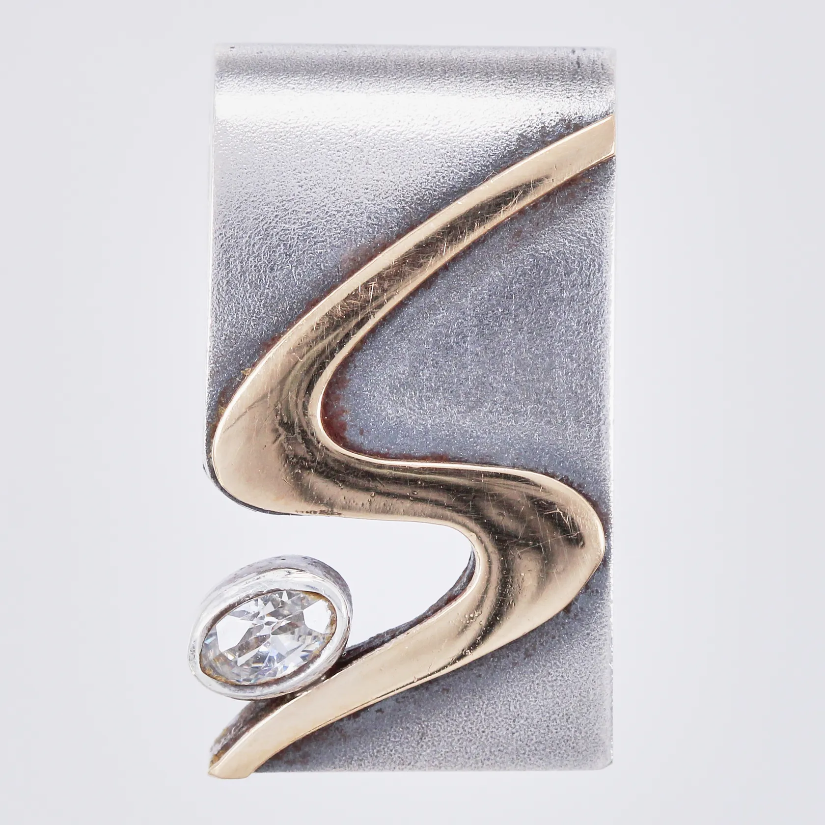 Hänge med vit sten, Alton Pernilla Wiberg, längd ca 25mm, bredd ca 12mm, 18K samt silver Vikt: 5,4 g.