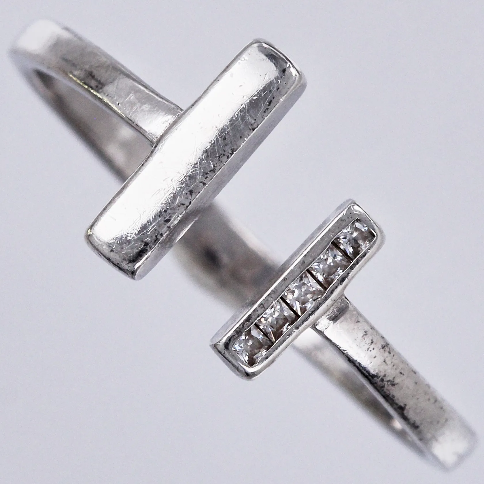 Ring med vita stenar, stl: 19, bredd: ca 2mm, silver 925/1000 Vikt: 2 g.