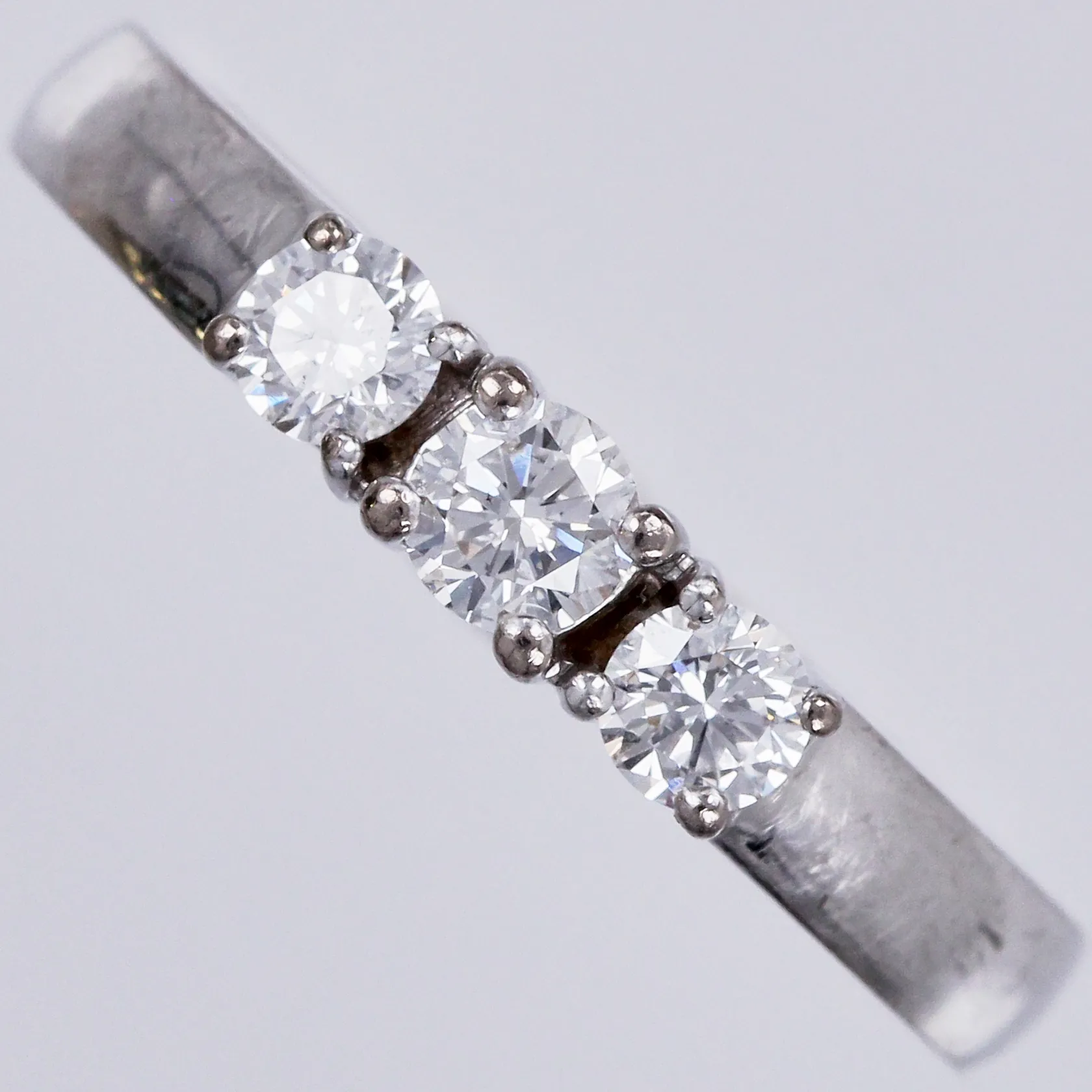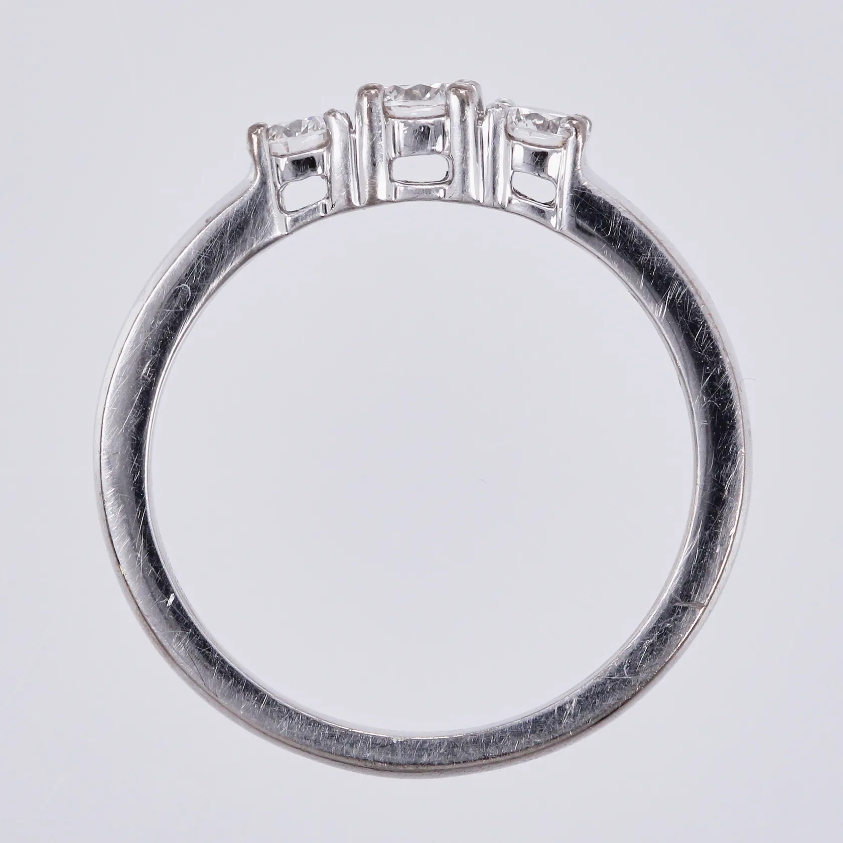 Ring med diamanter ca 1x0,18ct +1x0,15ct samt 1 sten som indikerar på syntetisk diamant, GHA, stl: 17¾, bredd ca 3mm, 18K Vikt: 5,4 g.