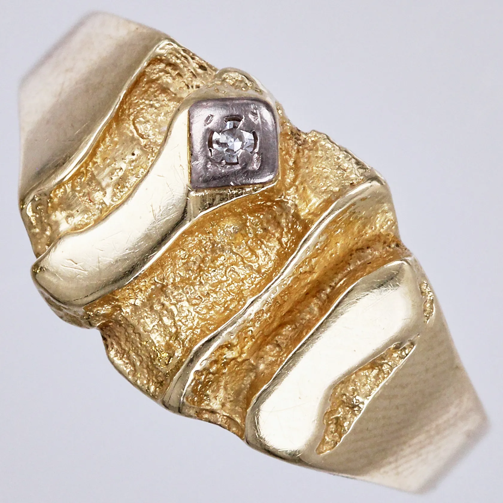 Ring med diamant 1x0,01ct, stl. 18¾, bredd: ca 3-12mm, 14K Vikt: 4,1 g.