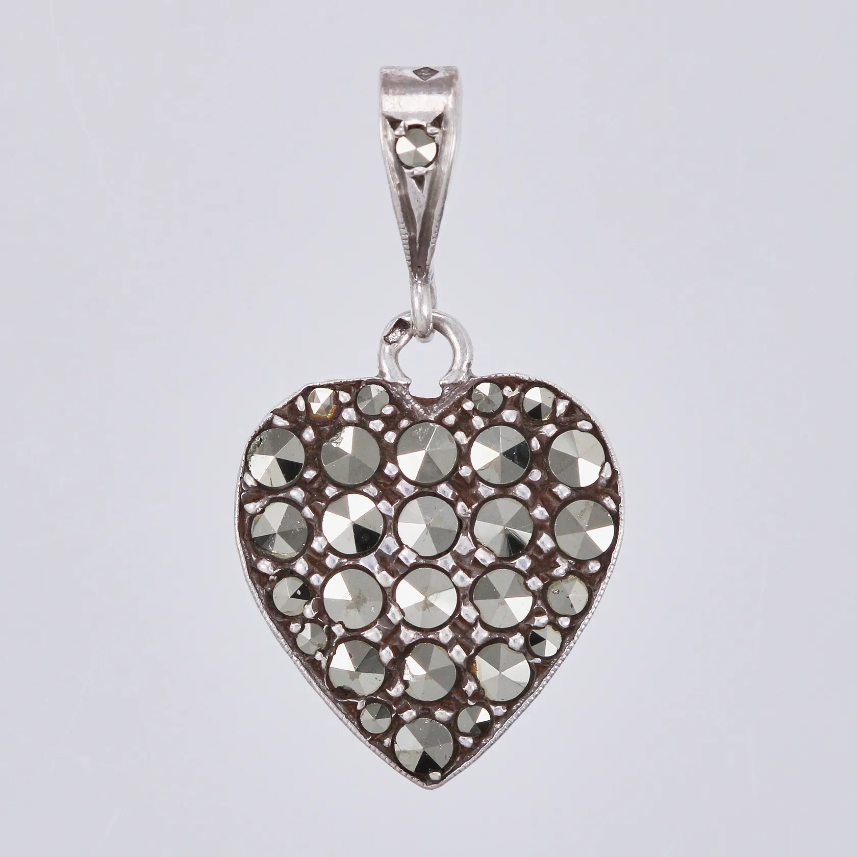 Hänge med markasiter, hjärta, längd: ca 2,6cm, bredd: ca 1-15mm, silver, 830/1000 Vikt: 3 g.