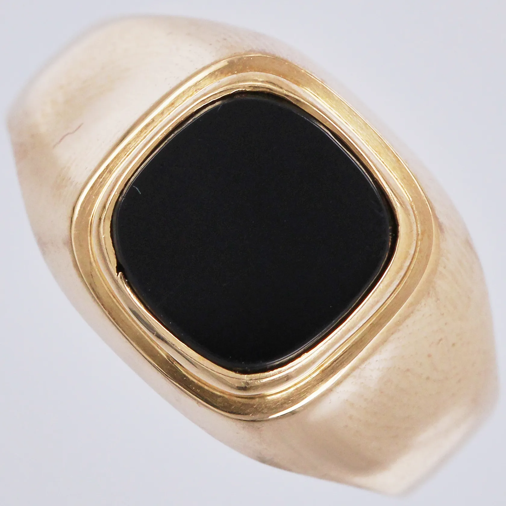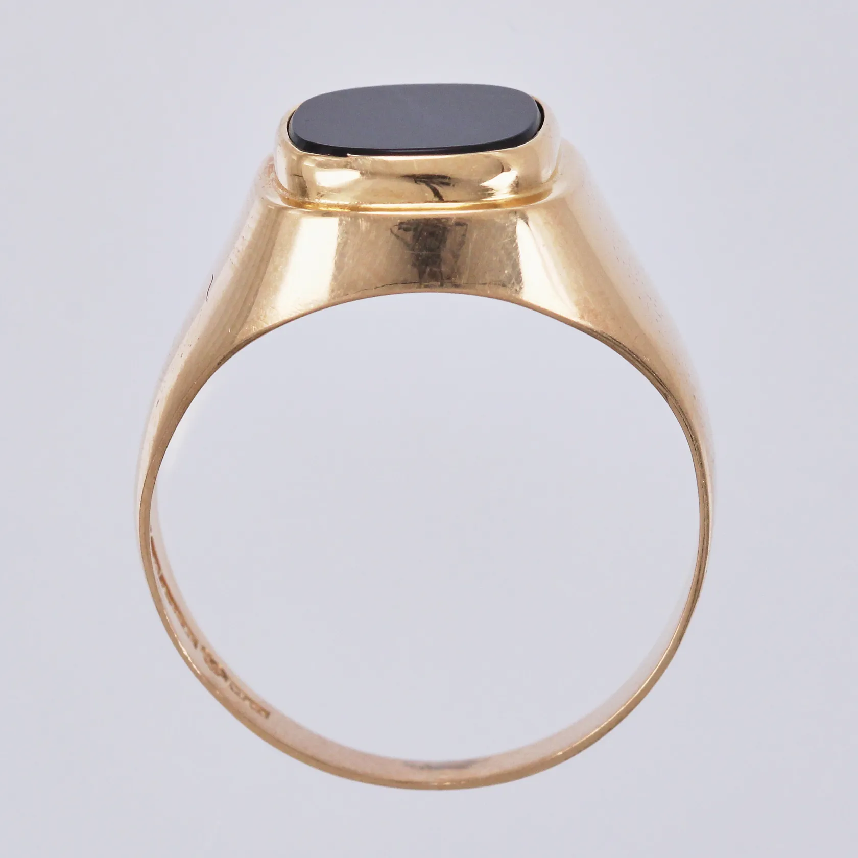 Klackring med svart sten, stl. 19¼, bredd: ca 4-13mm, Sandberg Sweden AB Falköping, år 1962, 18K Vikt: 3,8 g.