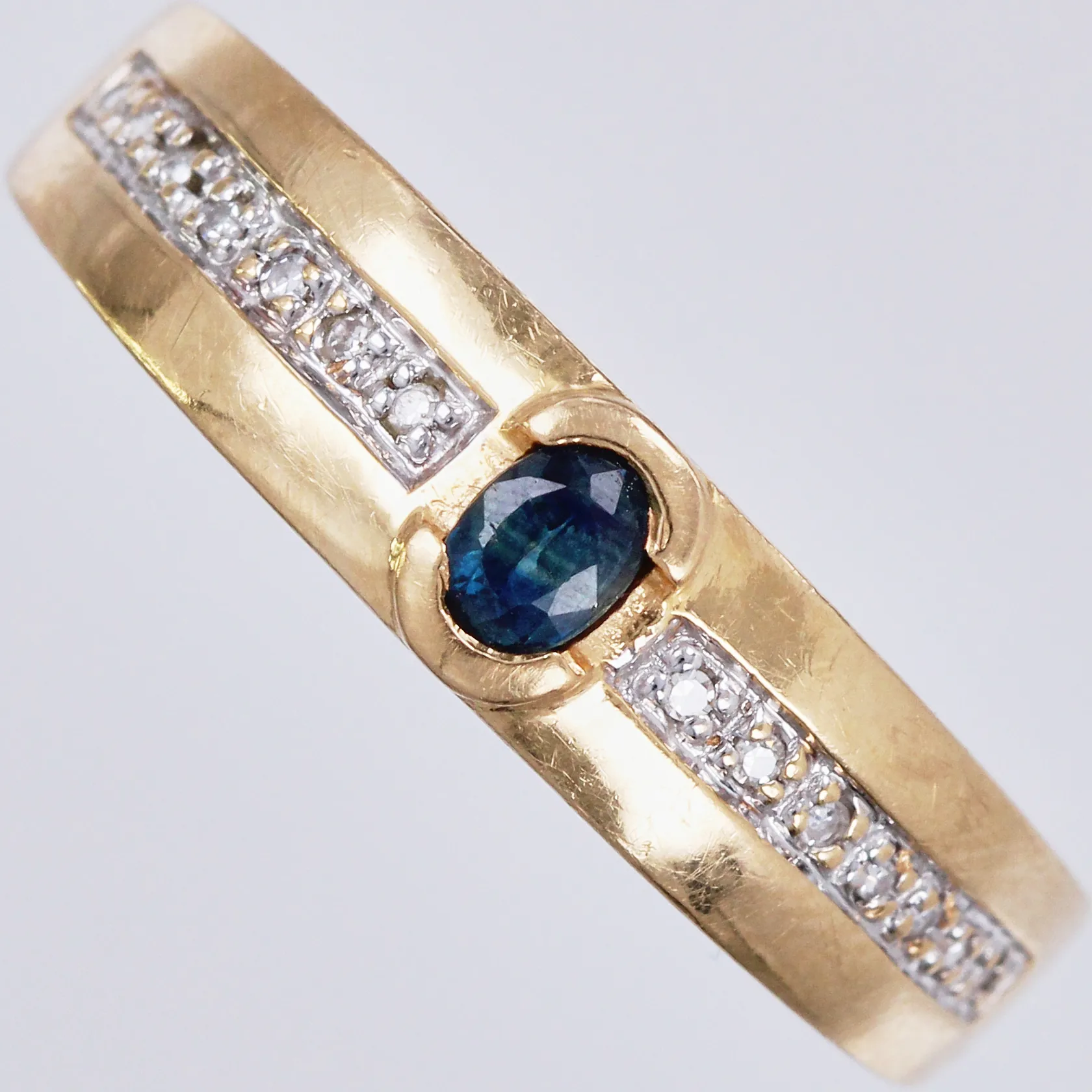 Ring med safir & diamanter ca 14x0,005ct, stl: 20, bredd ca 2-6mm, GHA 18K Vikt: 3,3 g.