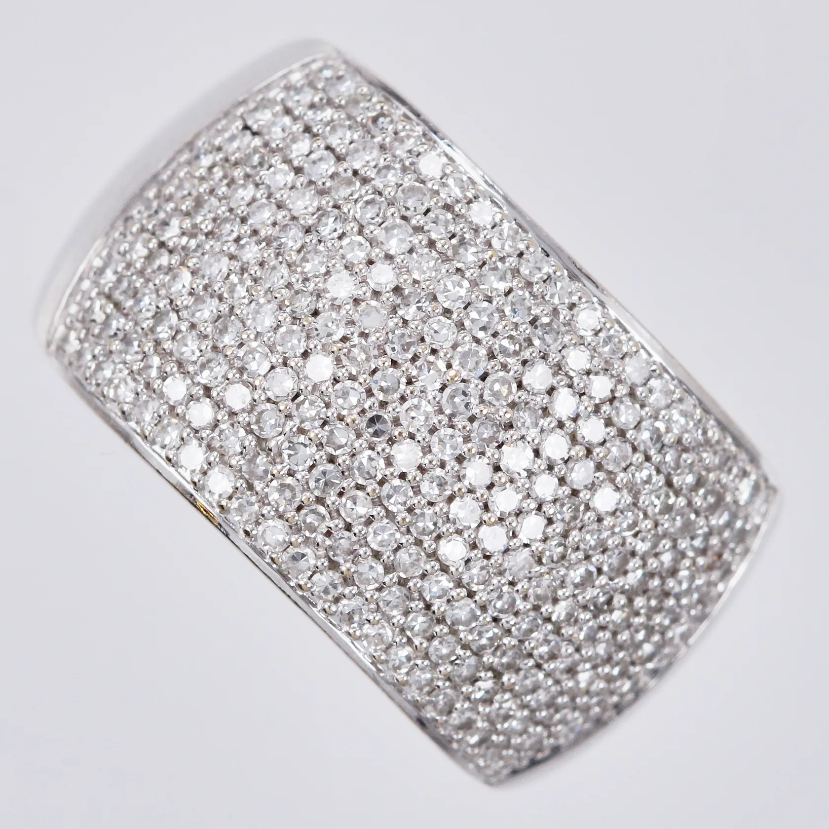 Ring med diamanter ca 225 x 0,001ct åttkantslipade, stl: ca 17½, bredd: ca 5-13mm, GHA, 1 diamant saknas, vitguld, 18K Vikt: 8 g.