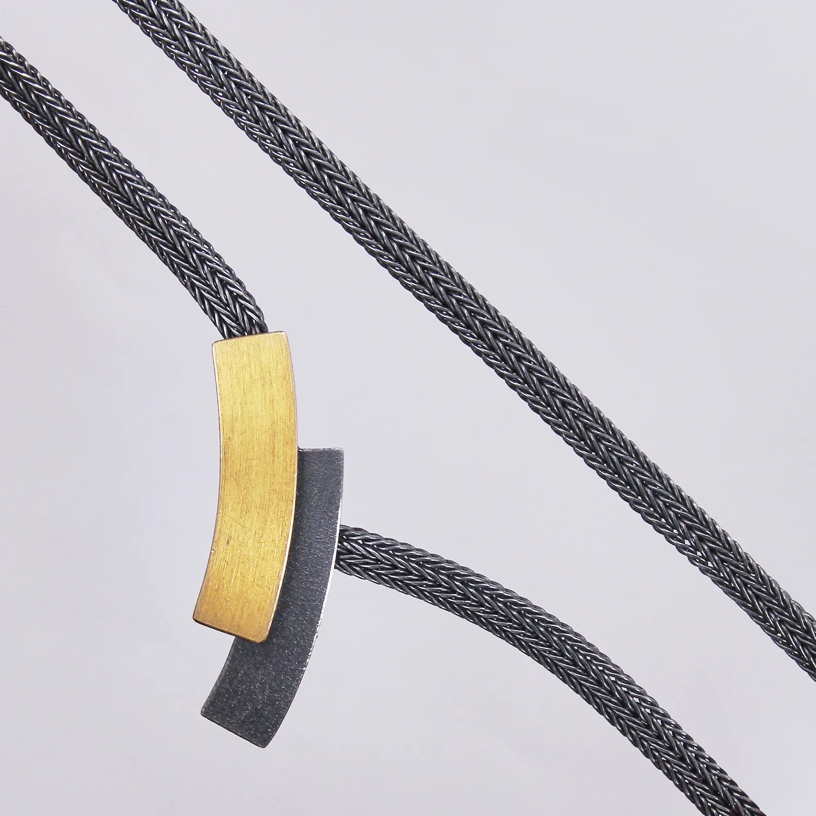 Collier i oxiderat silver med förgylld detalj, längd ca 42cm, bredd ca 5mm, 925/1000 silver Vikt: 32,9 g.