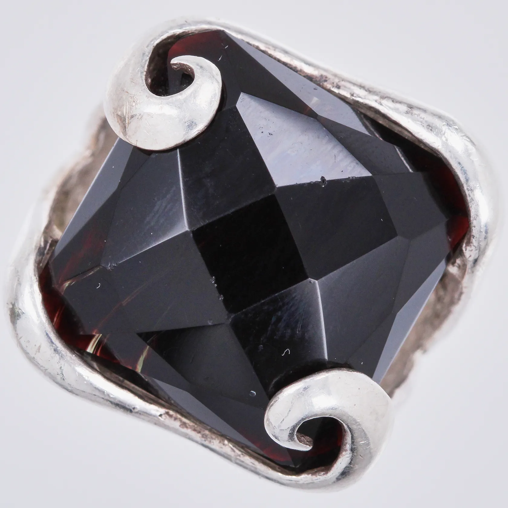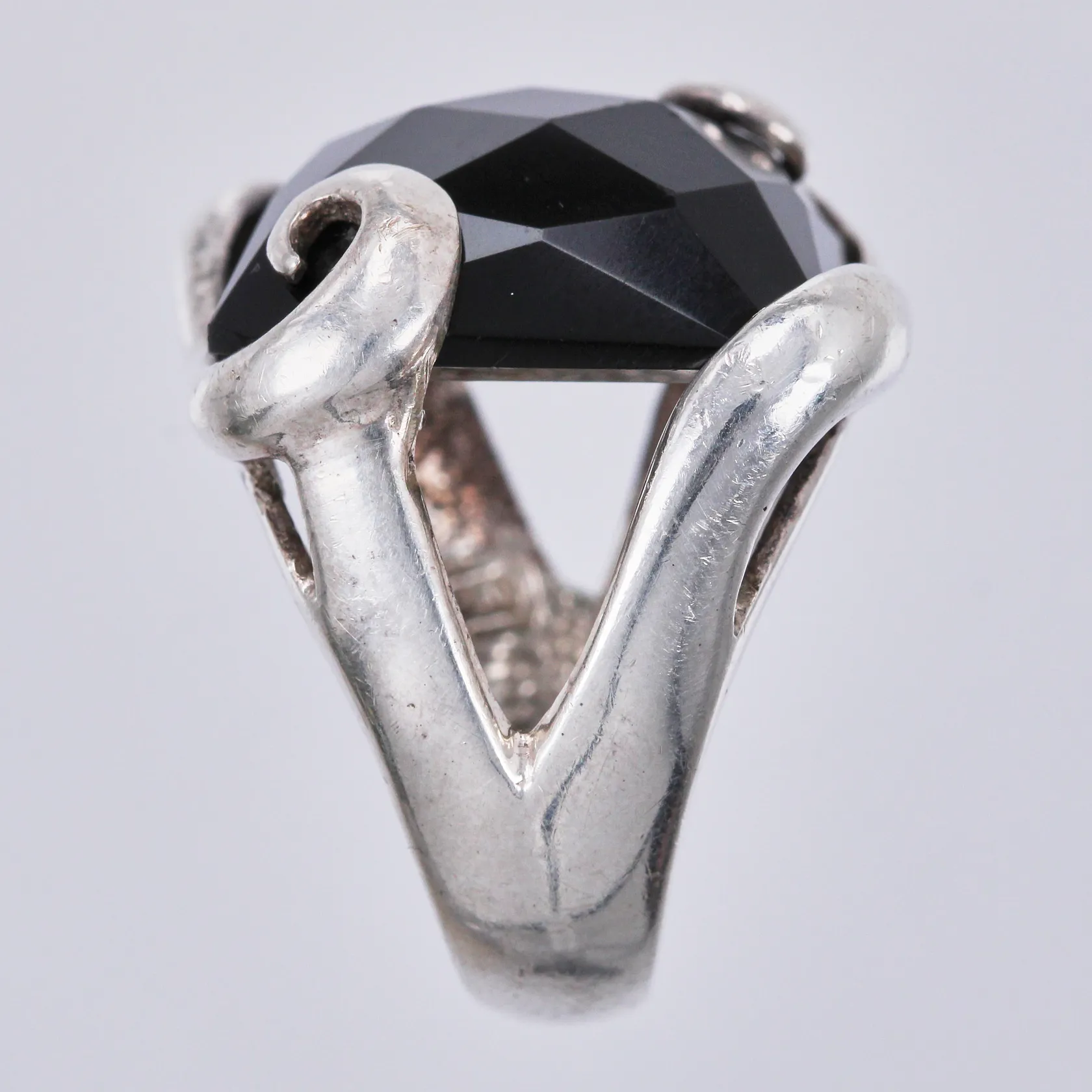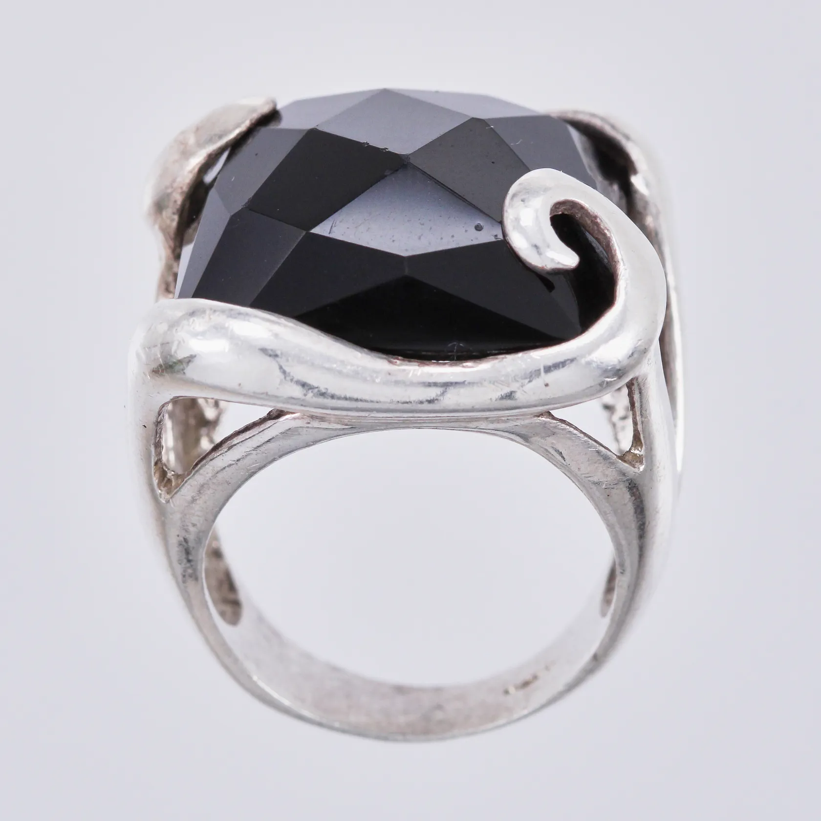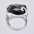 Ring med svart sten, stl: ca 18½, bredd: ca 5-22mm, 925/1000 silver Vikt: 16,4 g.