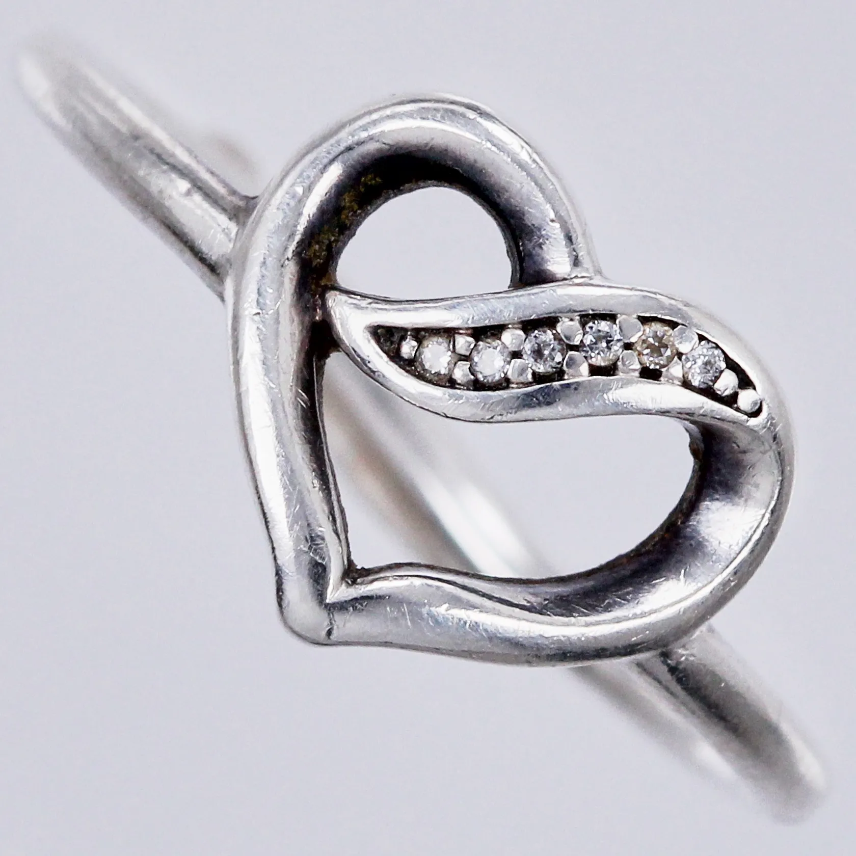 Ring, Hjärta med vita stenar, Pandora, stl: 16, bredd: ca 2-8mm, 925/1000, silver Vikt: 1,8 g.