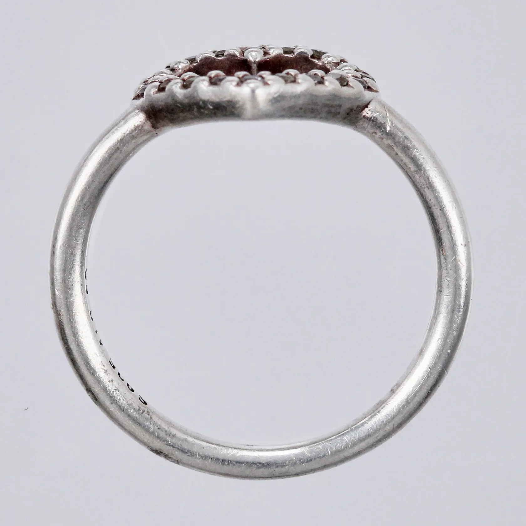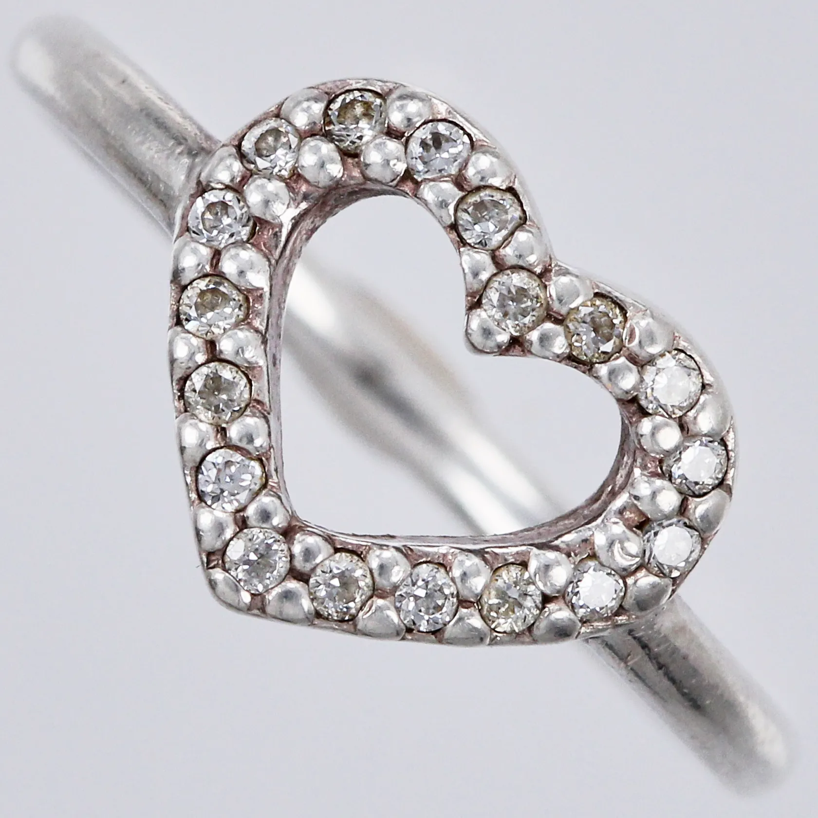 Ring, Hjärta med vita stenar, stl: 16½, bredd: ca 2-9mm, 925/1000, silver Vikt: 2,2 g.