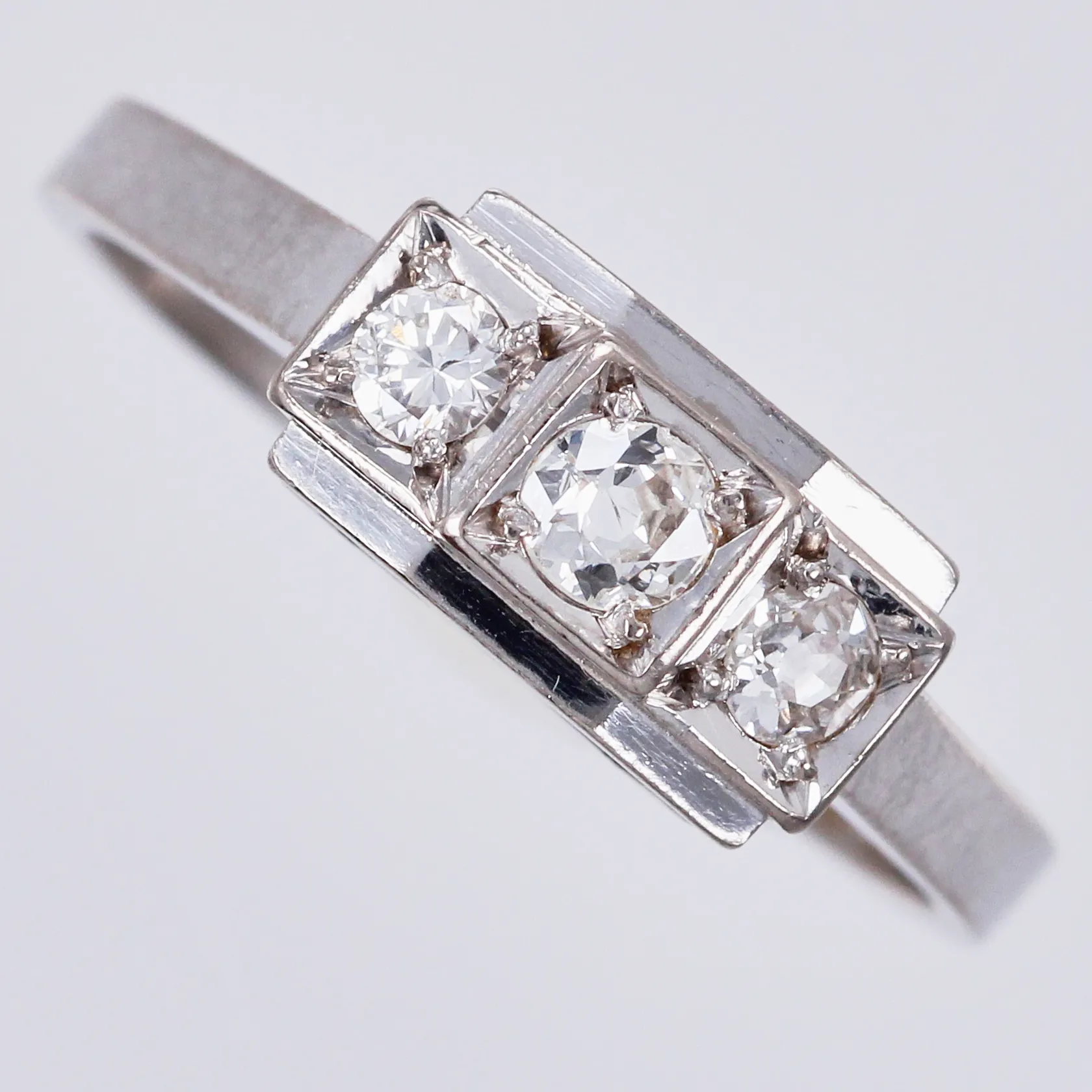 Ring Med diamanter 1 x ca 0,10ct, 2 x ca 0,07ct, stl ca 17½, bredd ca 0,2-6mm, Reutners Guldsmedsaffär år 1972, 18K Vikt: 3,9 g.