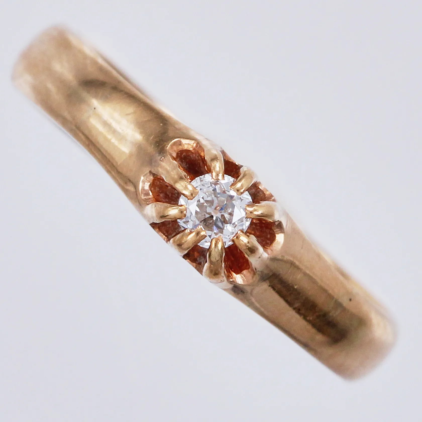 Ring med äldreslipad diamant 1 x ca 0,07ct, stl ca 16¾, bredd ca 3mm, 18K Vikt: 2,8 g.