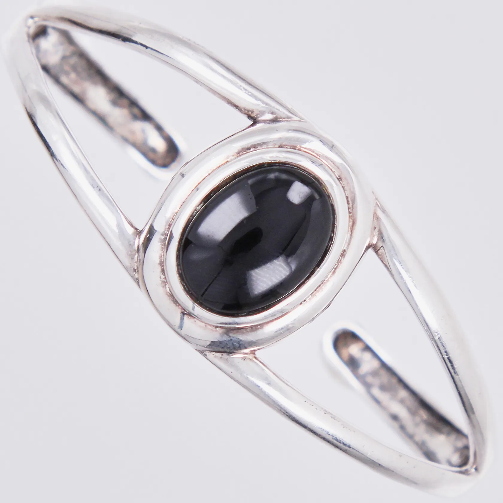 Armring med svart sten, Ø ca 6,5cm, bredd ca 5-25mm, öppen, stämplad VJ, 925/1000 silver Vikt: 15,1 g.