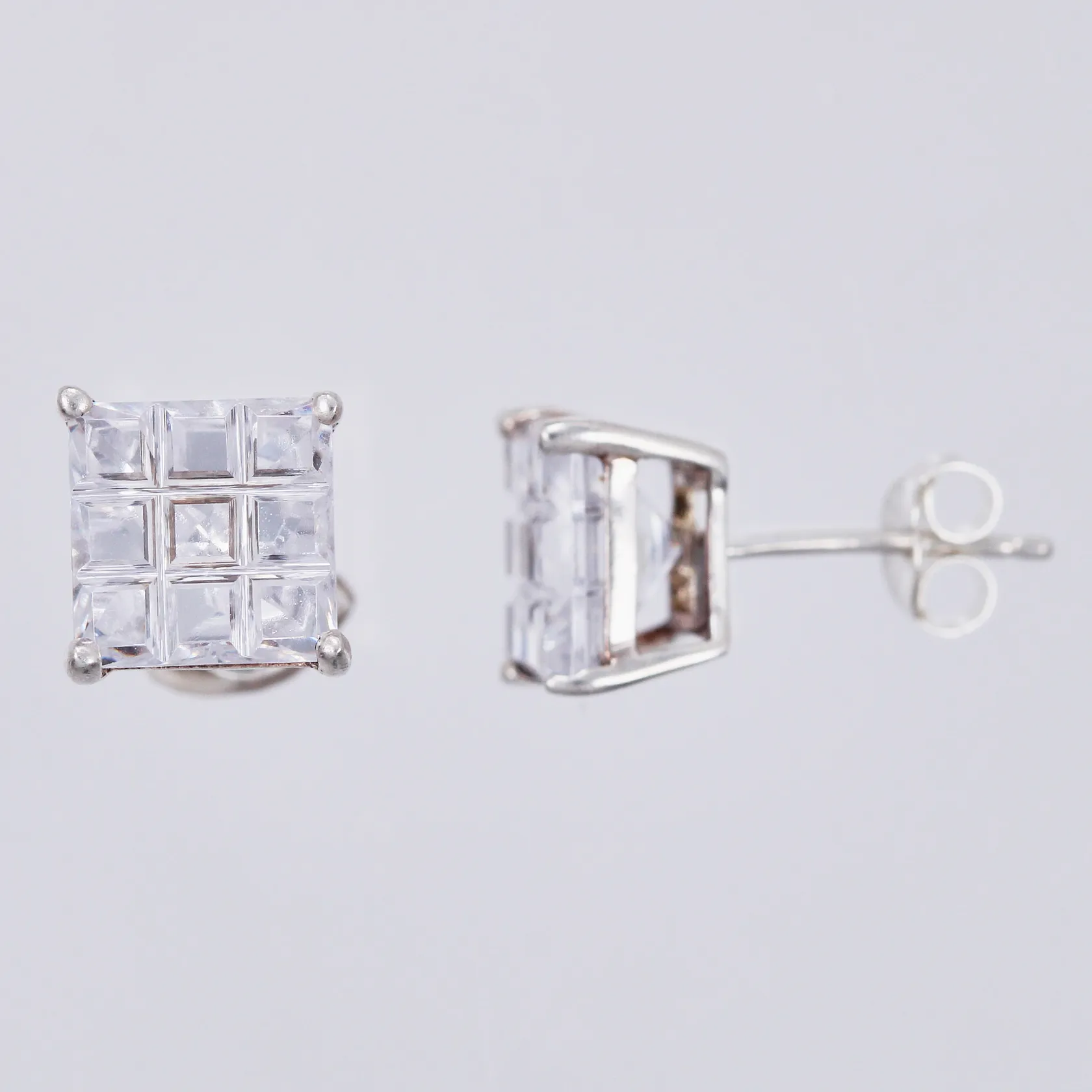 Ett par örhängen med vita stenar, Längd ca 0,7cm, bredd ca 7mm, GHA, 925/1000 silver Vikt: 2,6 g.