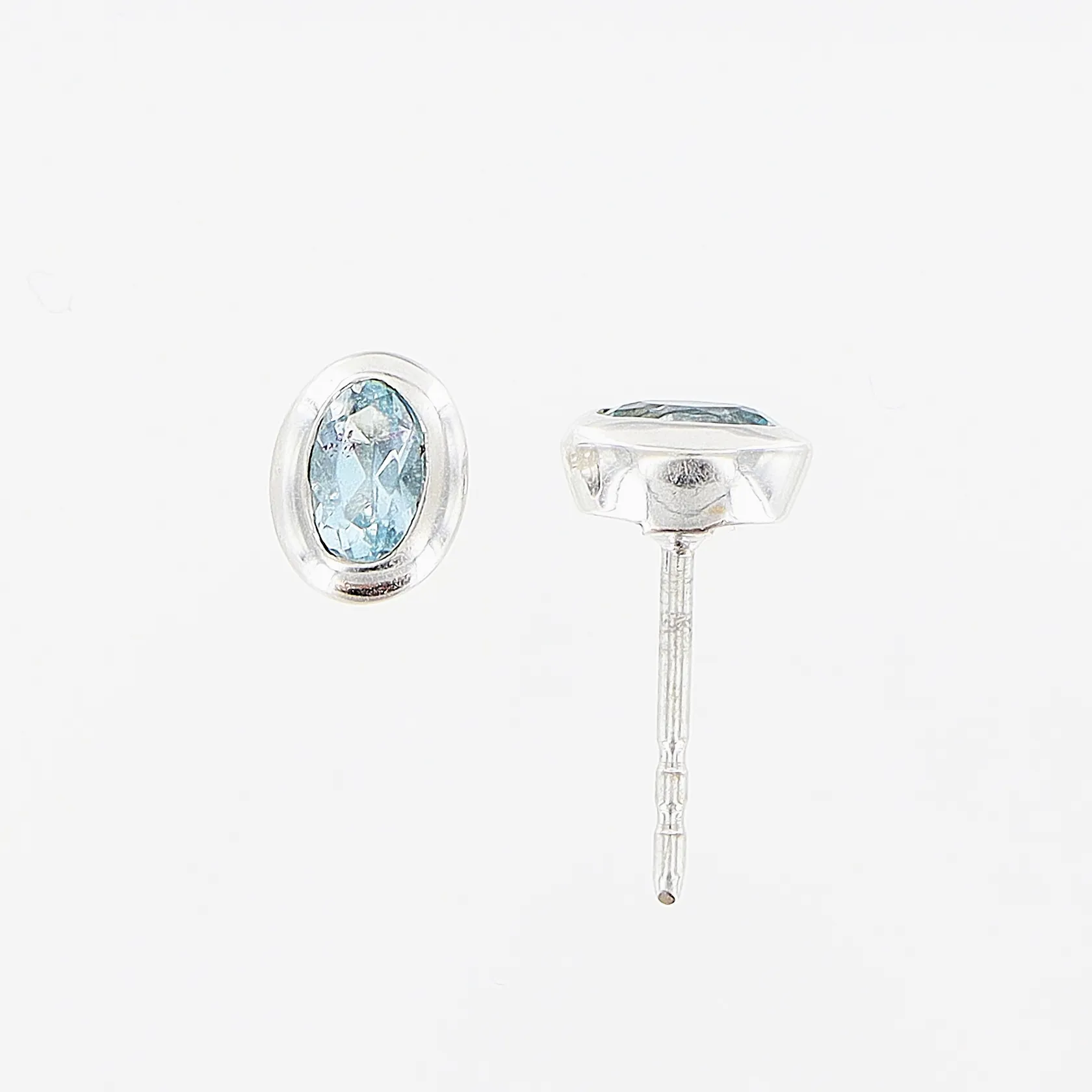 Ett par örhängen, ljusblå stenar, 5x6,5mm, vitguld, stoppar i gummi, 18K Vikt: 1,5 g.