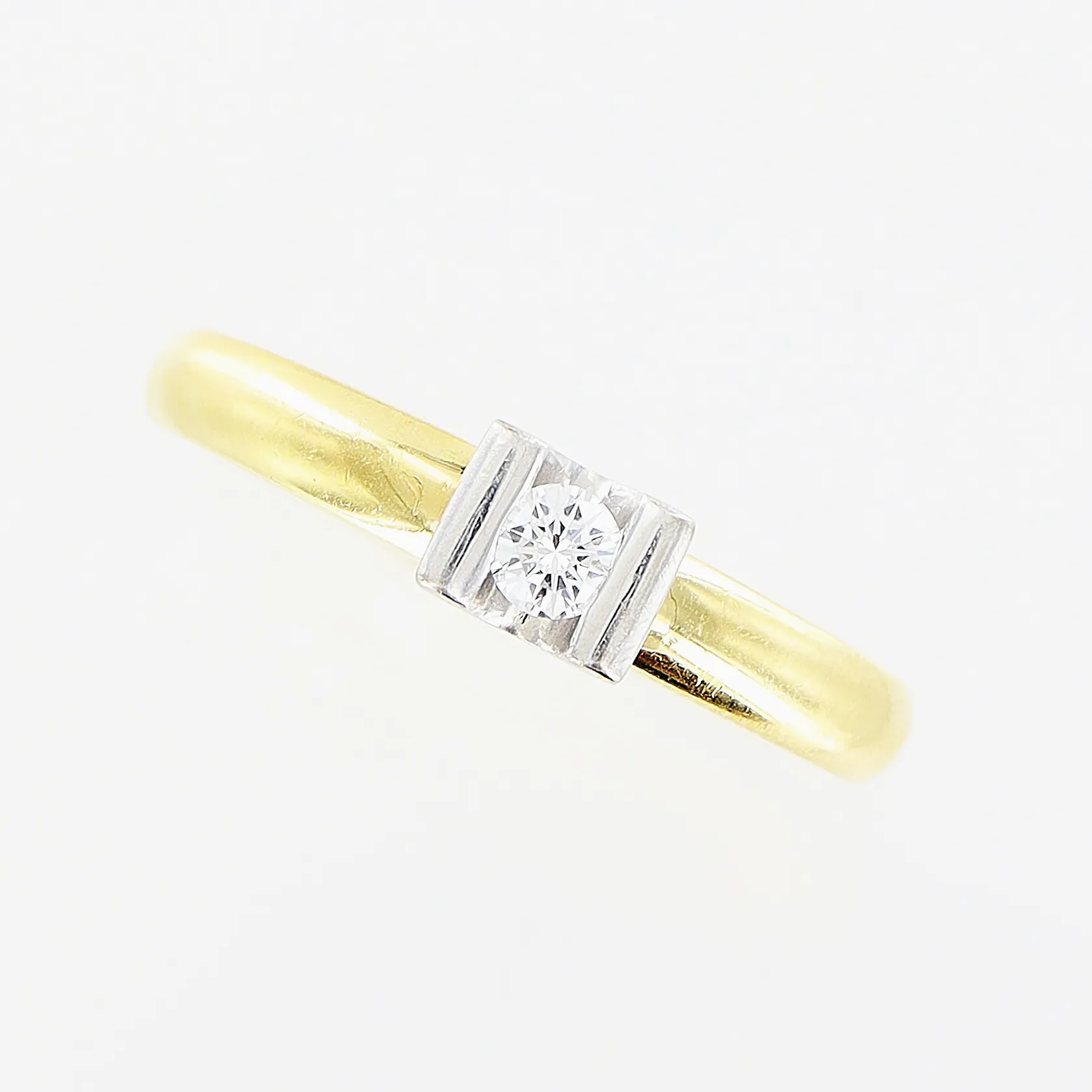 Ring, diamant 0,12ct enligt gravyr, stl 17½, bredd 2-4mm, vit/gulguld, 18K Vikt: 4,3 g.