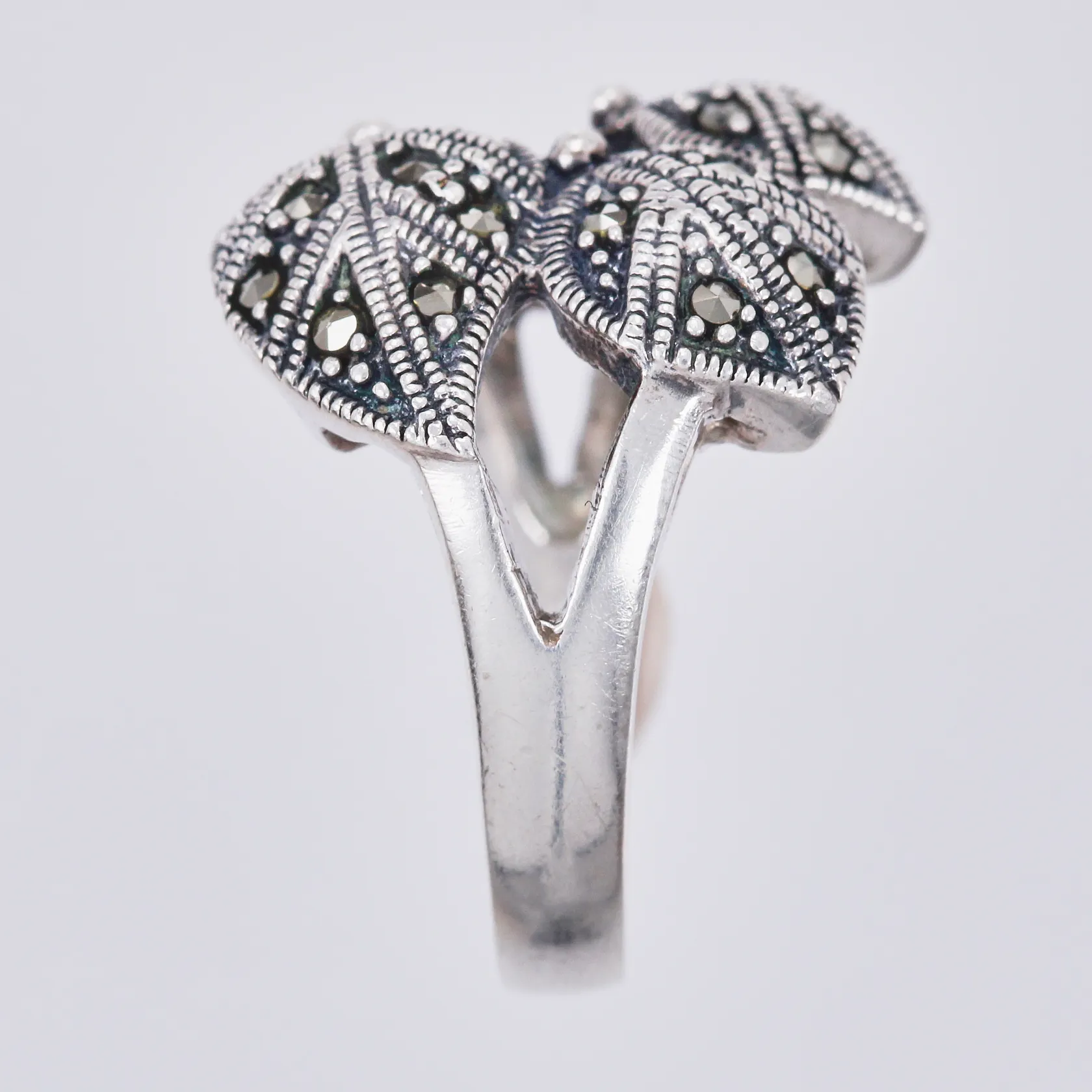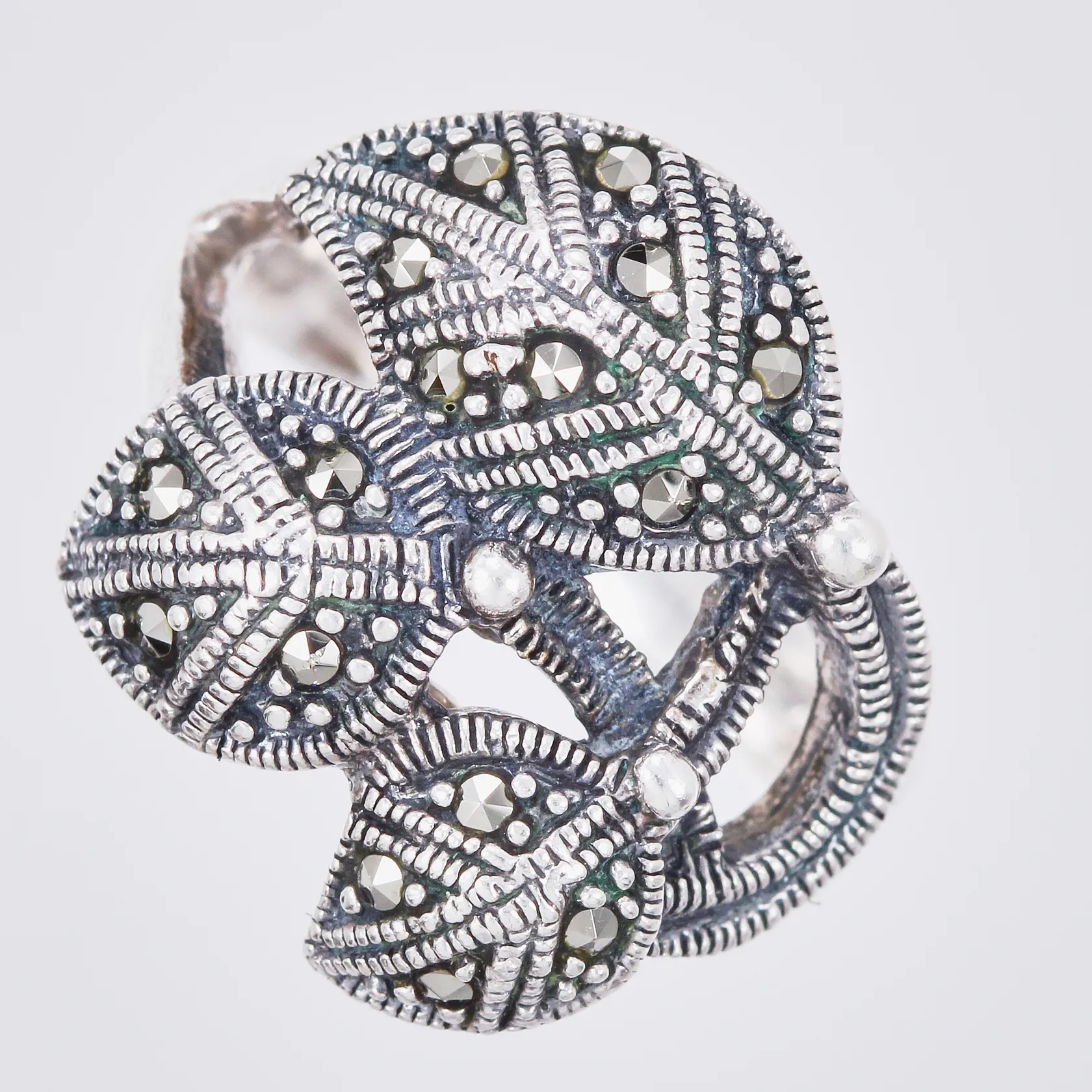 Ring med markasiter, stl: 17, bredd: ca 3-20mm, 925/1000, silver
