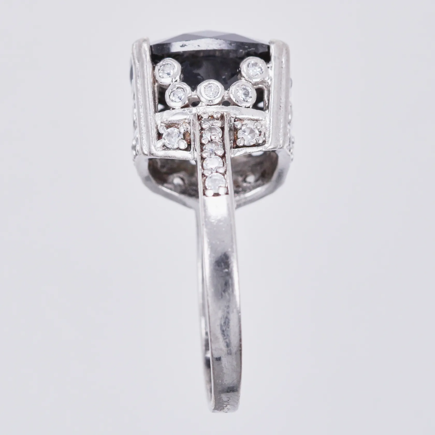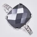 Ring med svart/vita stenar, stl: 17¼, bredd: ca 2-12mm, en sten saknas, 925/1000, silver Vikt: 5,6 g.