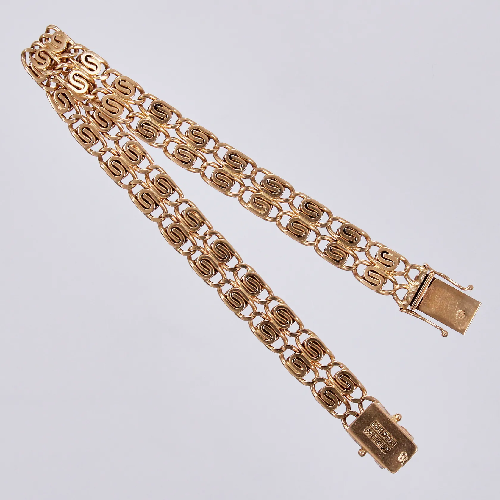 Armband längd ca 20,2cm, bredd ca 9mm, PCHFB Production AB 1964, 18K Vikt: 26,8 g.