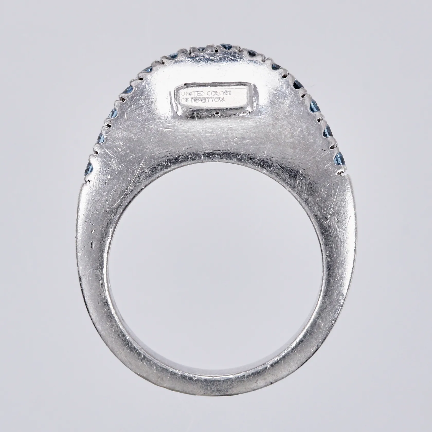 Ring med blåa stenar, stl. 17, bredd: ca 4mm, United Colors of Benetton, silver, 925/1000 Vikt: 7,3 g.