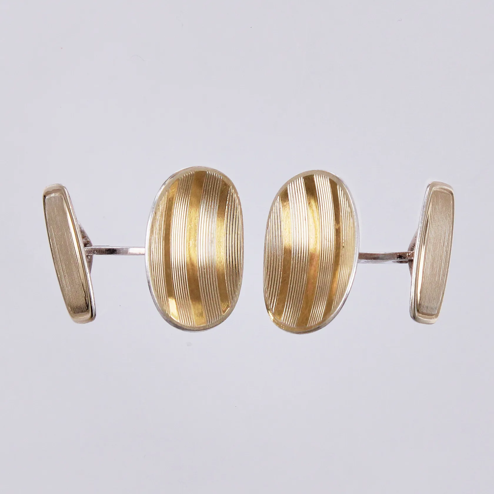 Ett par manschettknappar, längd: ca 2,8cm, bredd: ca 1-19mm, förgyllt silver, 835/1000 Vikt: 7,1 g.