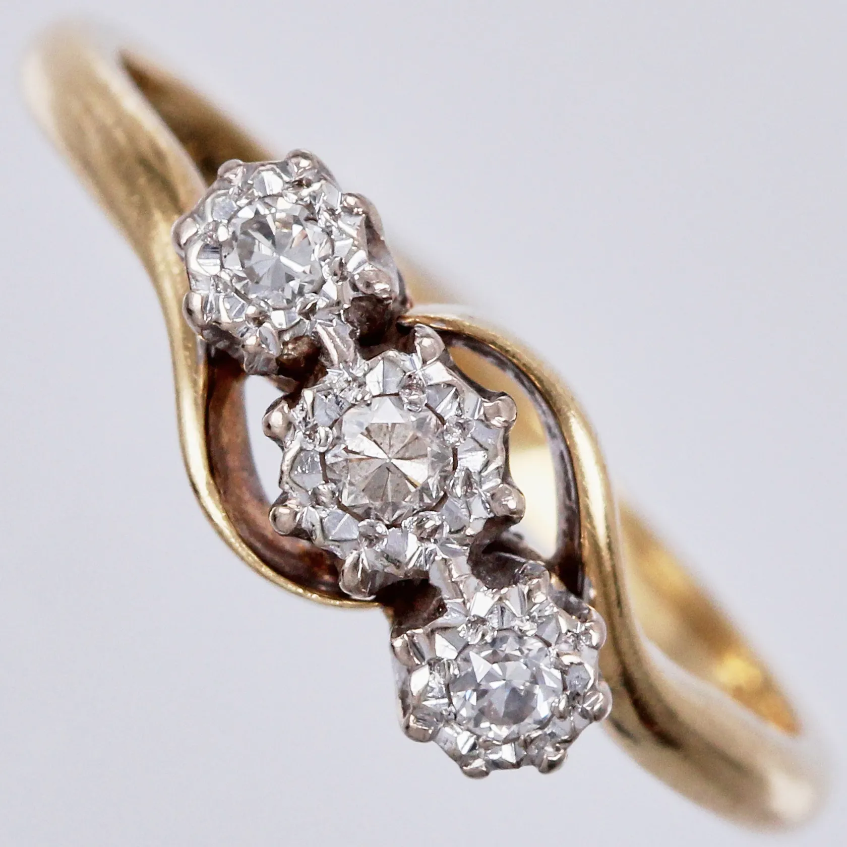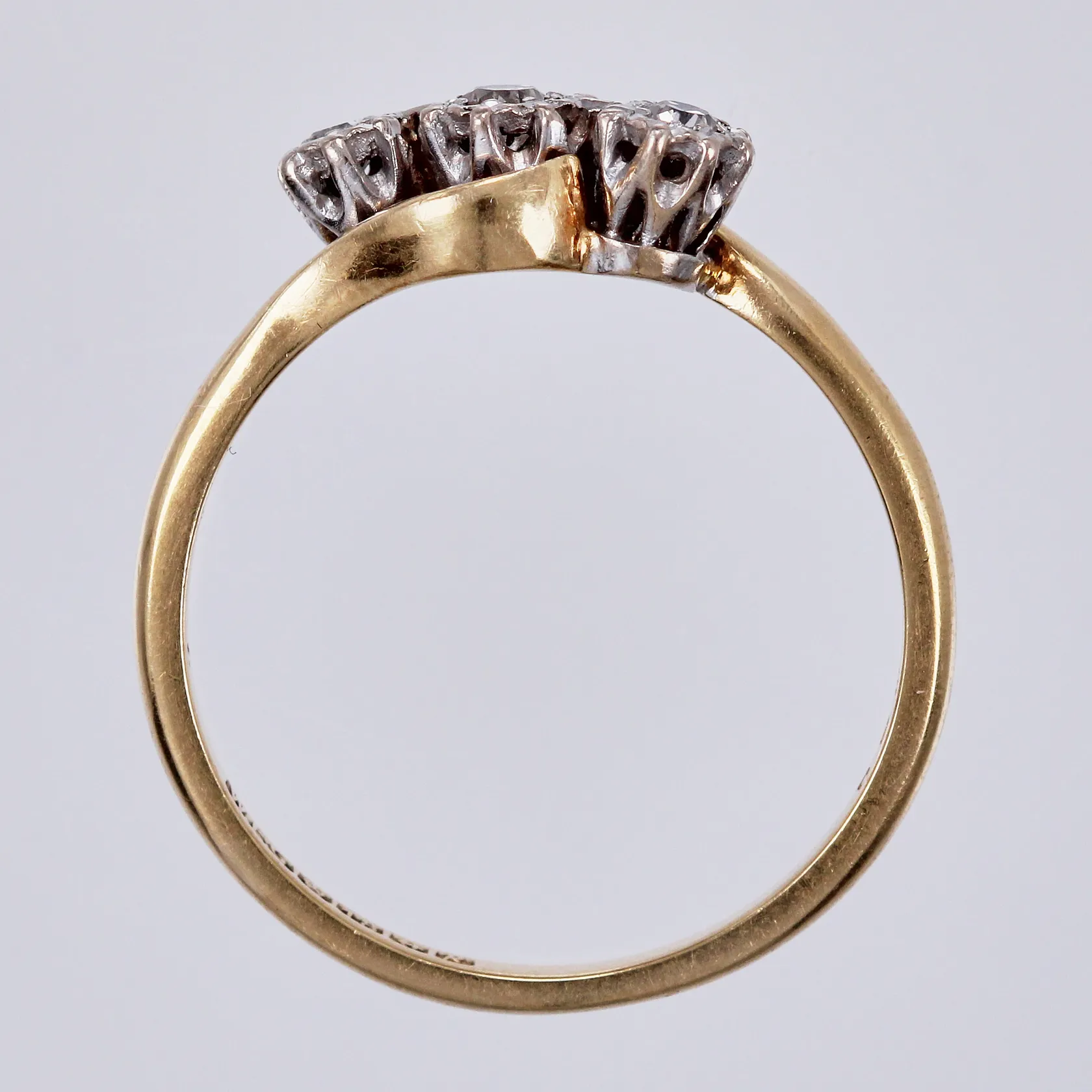 Ring med diamanter ca 2x0,03ct, 1x0,05ct, 8/8-slipade, stl: 18, bredd: ca 1-6mm, engelska stämplar, W.E.G, 18K Vikt: 3,2 g.