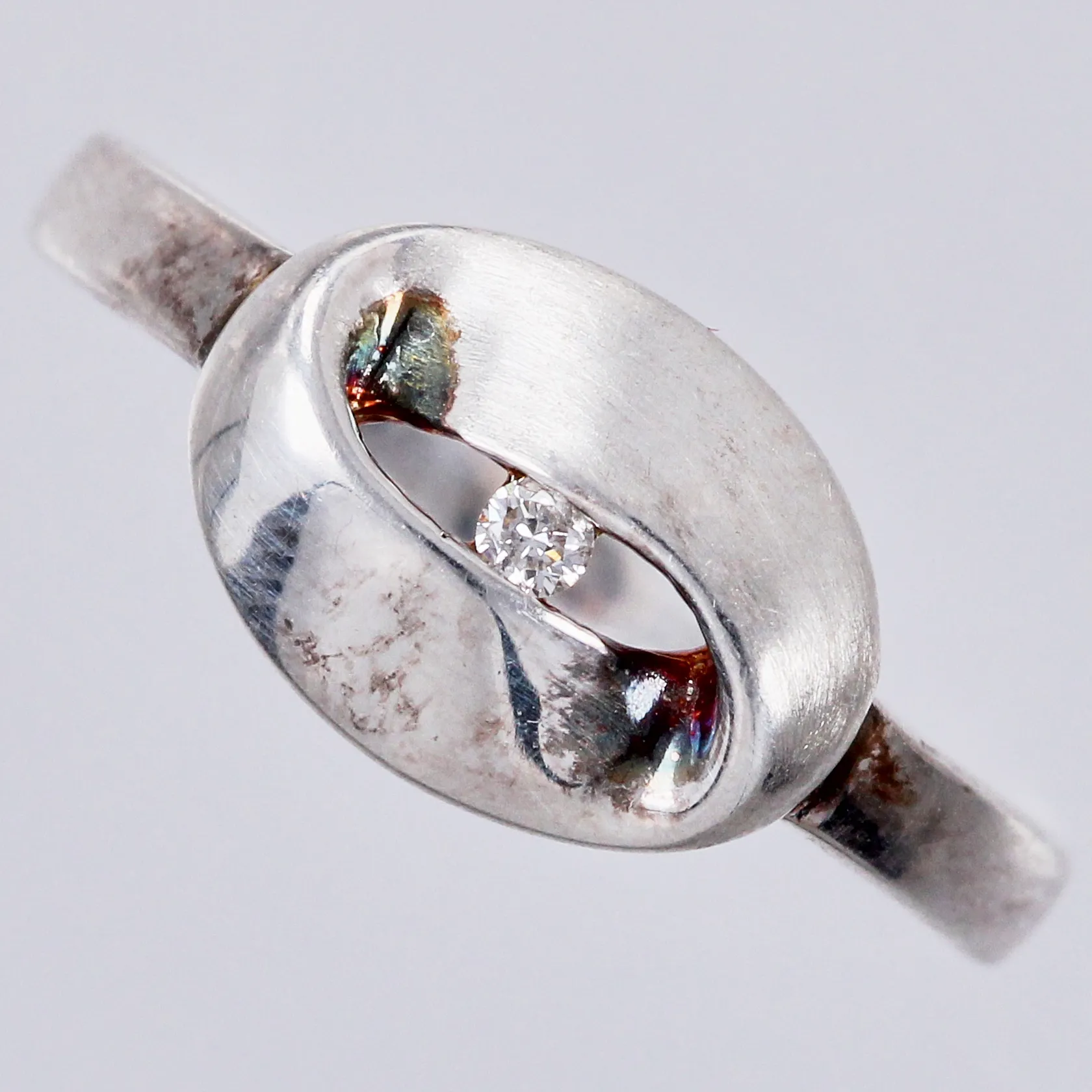 Ring med vit sten, stl: 16, bredd: ca 2-8mm, GHA, 925/1000, silver Vikt: 2 g.