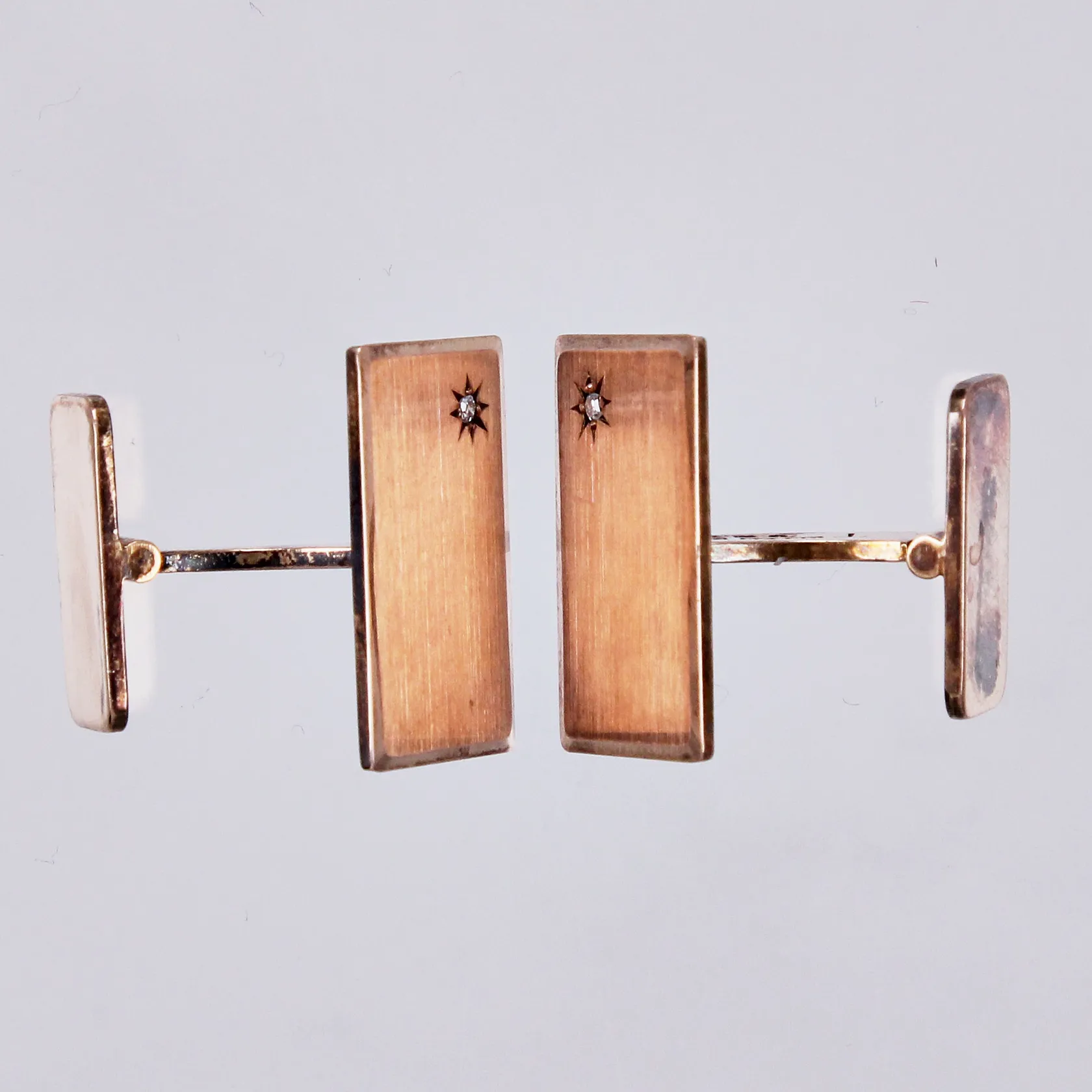 Ett par manschettknappar med diamanter ca 2x0,01ct åttkantslipade, GD&Co, Guldvaruaktiebolaget G. Dahlgren & Co Ab, år 1984, förgyllda, 925/1000 Silver Vikt: 11,3 g.