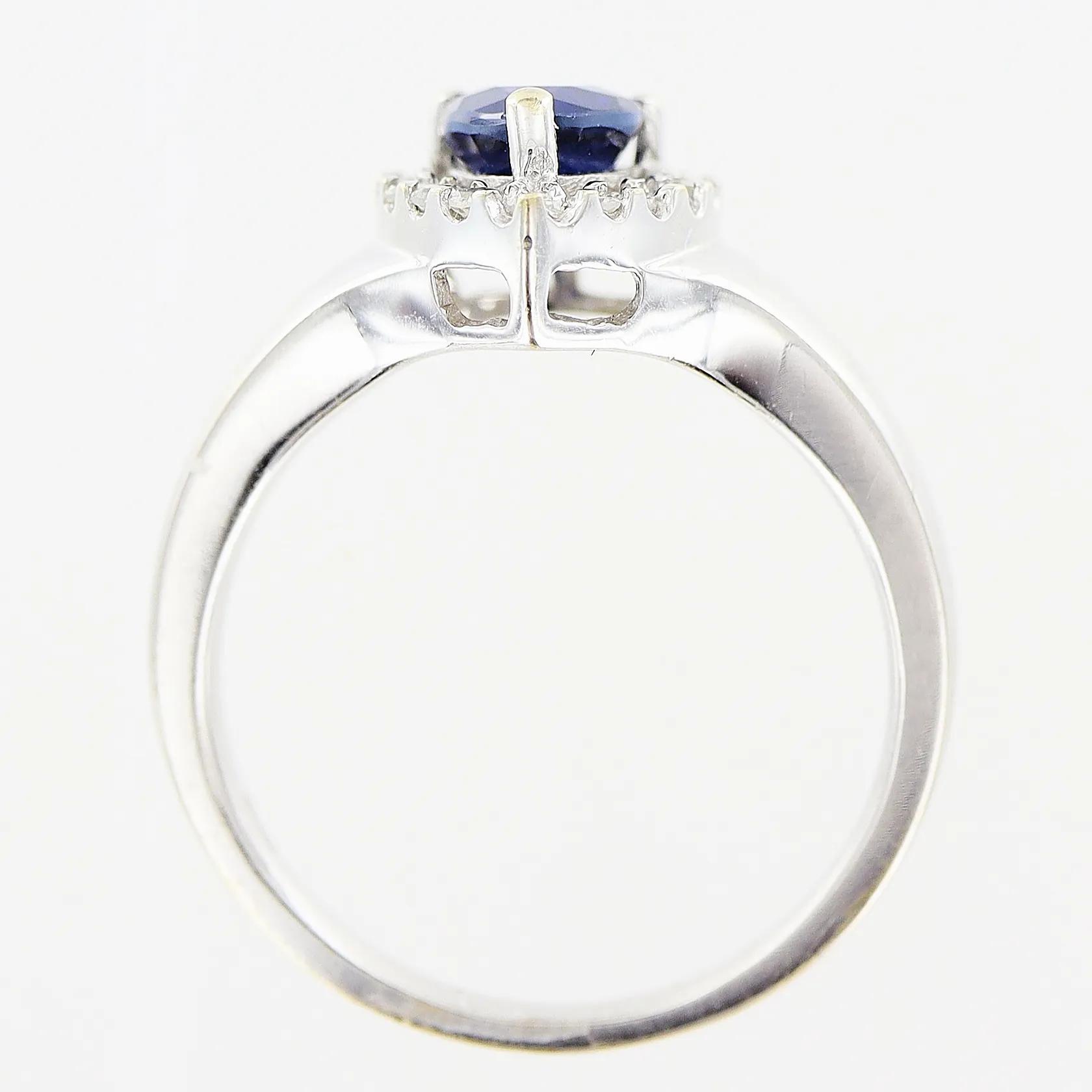 Ring, syntetisk safir, diamanter 16 x ca 0,01ct, stl 16¼, bredd 2-11,5mm, GHA, vitguld, 18K Vikt: 5,1 g.