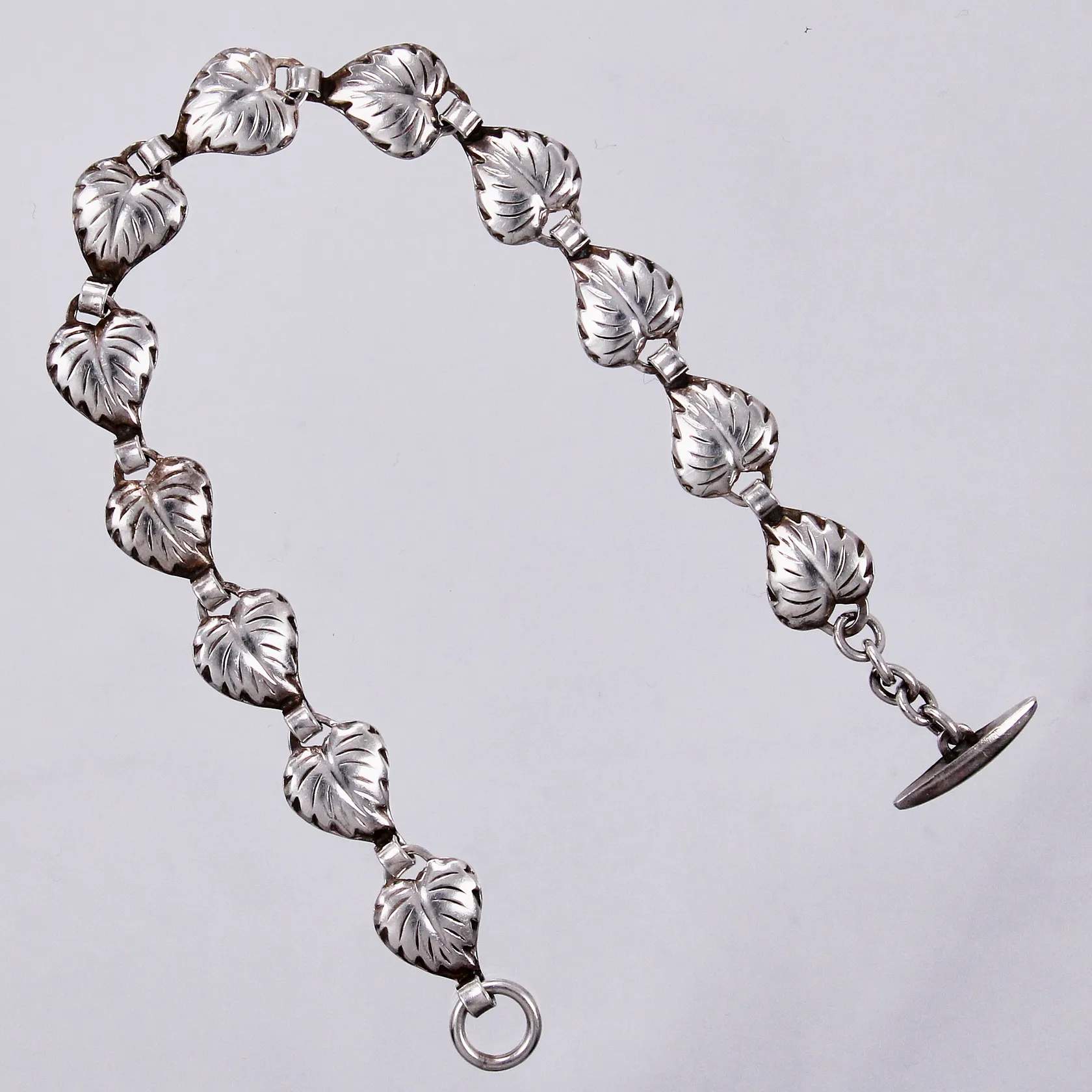 Armband, löv, Hermann Siersbøl, Denmark, längd: ca 20cm, bredd: ca 3-10mm, 925/1000 Silver Vikt: 9,7 g.