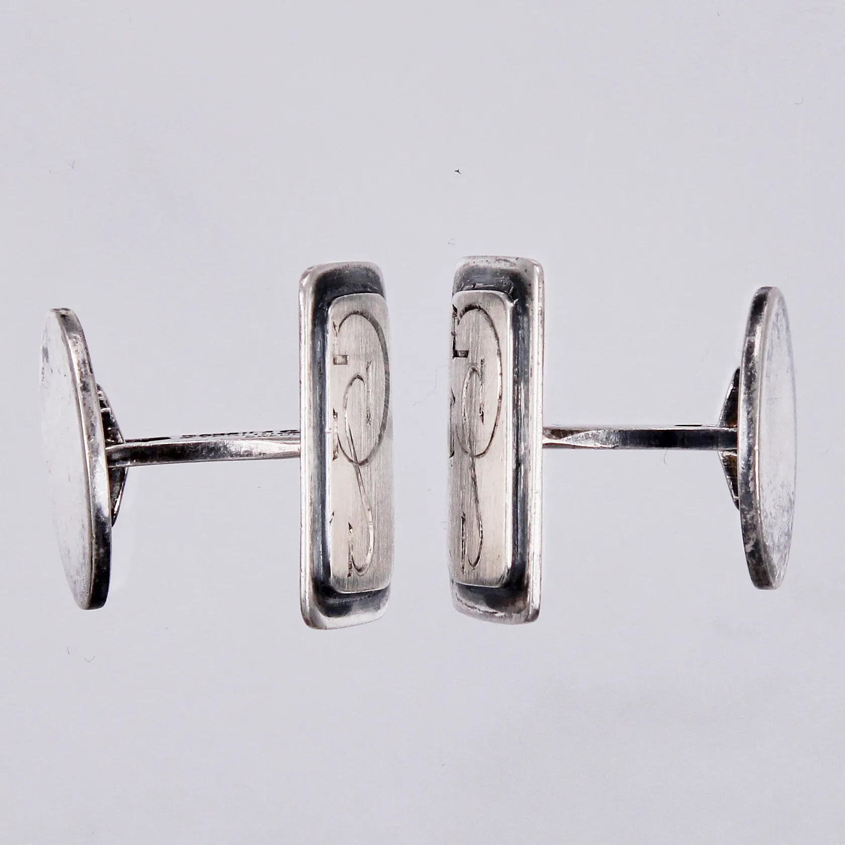Ett par manschettknappar, Borgila, Sweden, år 1956, längd: ca 2,2cm, bredd: ca 12mm, graverade med monogram SG, 925/1000 Silver Vikt: 15,9 g.