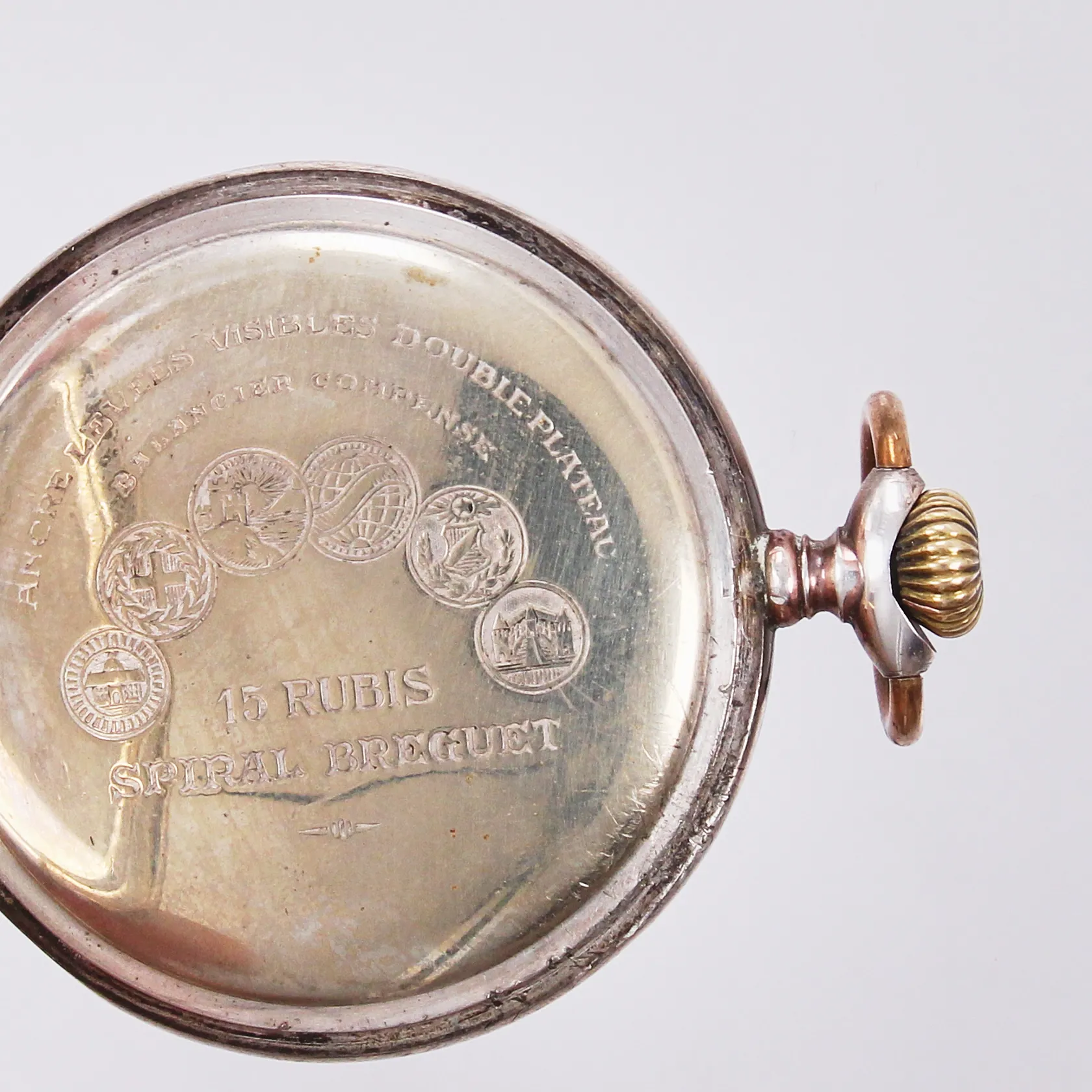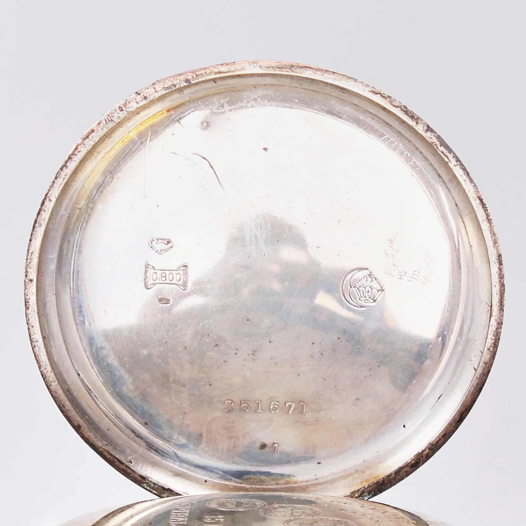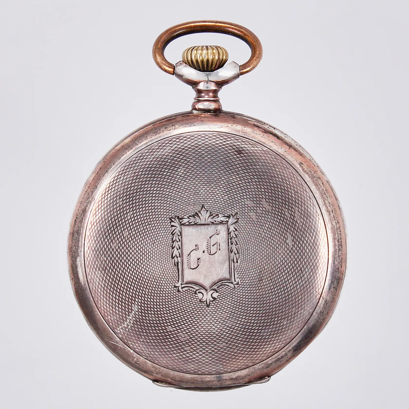 Fickur, Ø 5cm, graverad boett, silver, 800/1000 Vikt: 75 g.